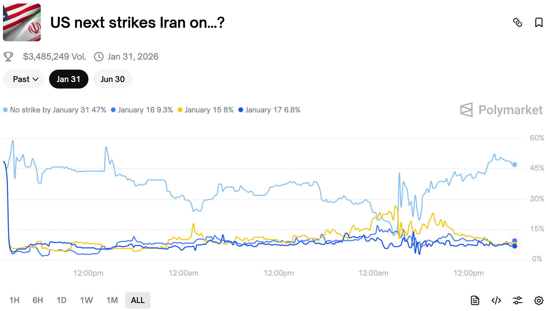 After an extremely bullish streak, traders are increasingly convinced there will be no US strikes on Iran by the end of the month.