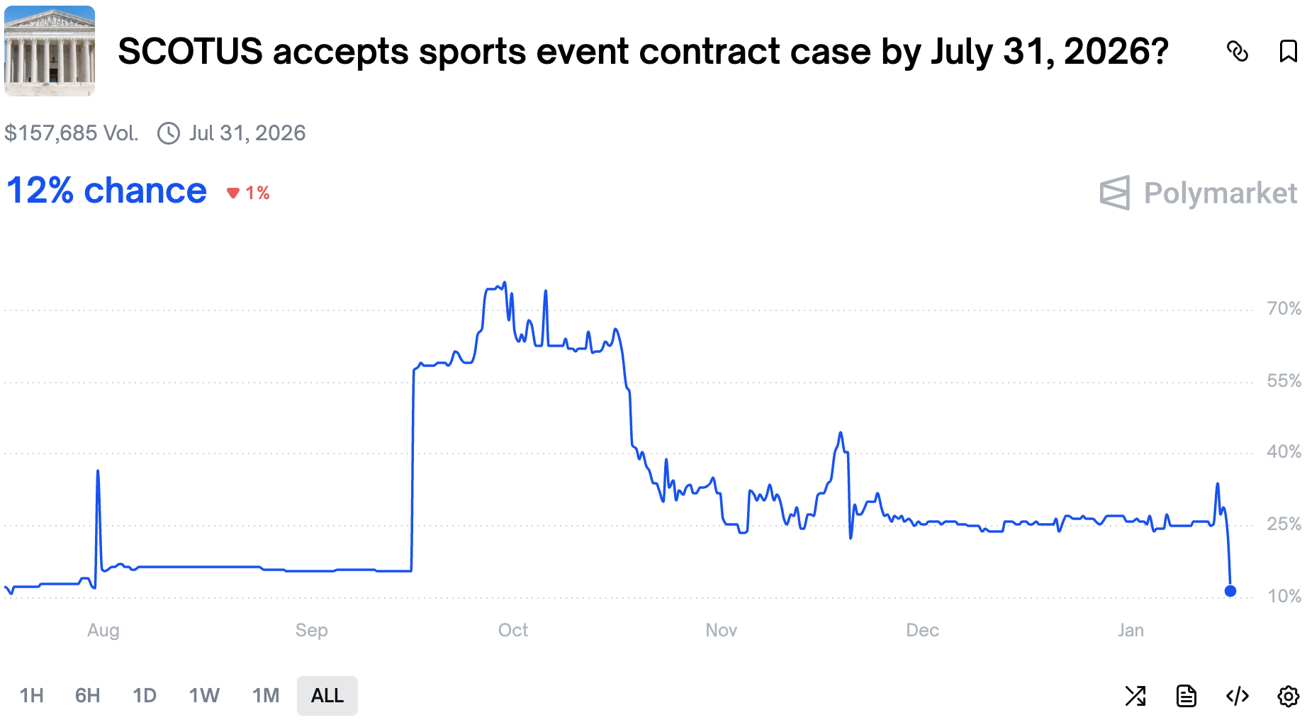 For some reason, the odds on SCOTUS accepting sports event contract case dropped significantly.