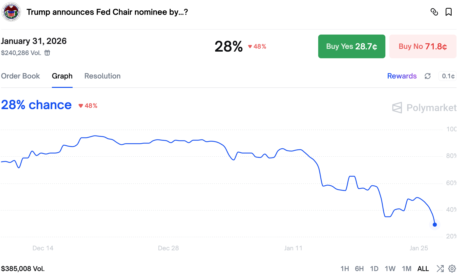 The race has been one of the most volatile markets recently. At one point we had 4 serious contenders, but it seems we are down to 2 - the race is now between Warsh and Rieder. But even as we hear that the announcement should be live in days, January is getting tighter by the day.