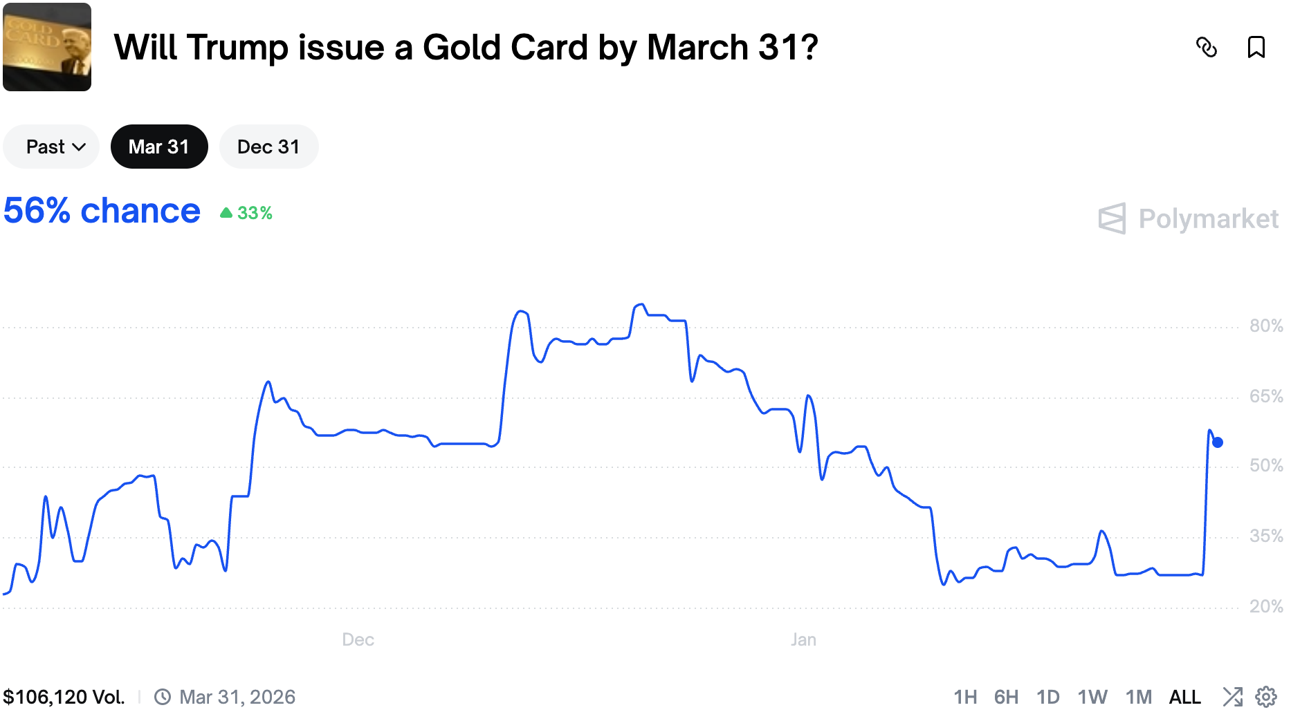Nicki Minaj has supposedly shared a photo of a Trump Gold Card, proclaiming herself Trump fan no. 1. However the primary resolution source is the Trump administration, so we might have to wait a few day (or weeks) for the market to catch up.
