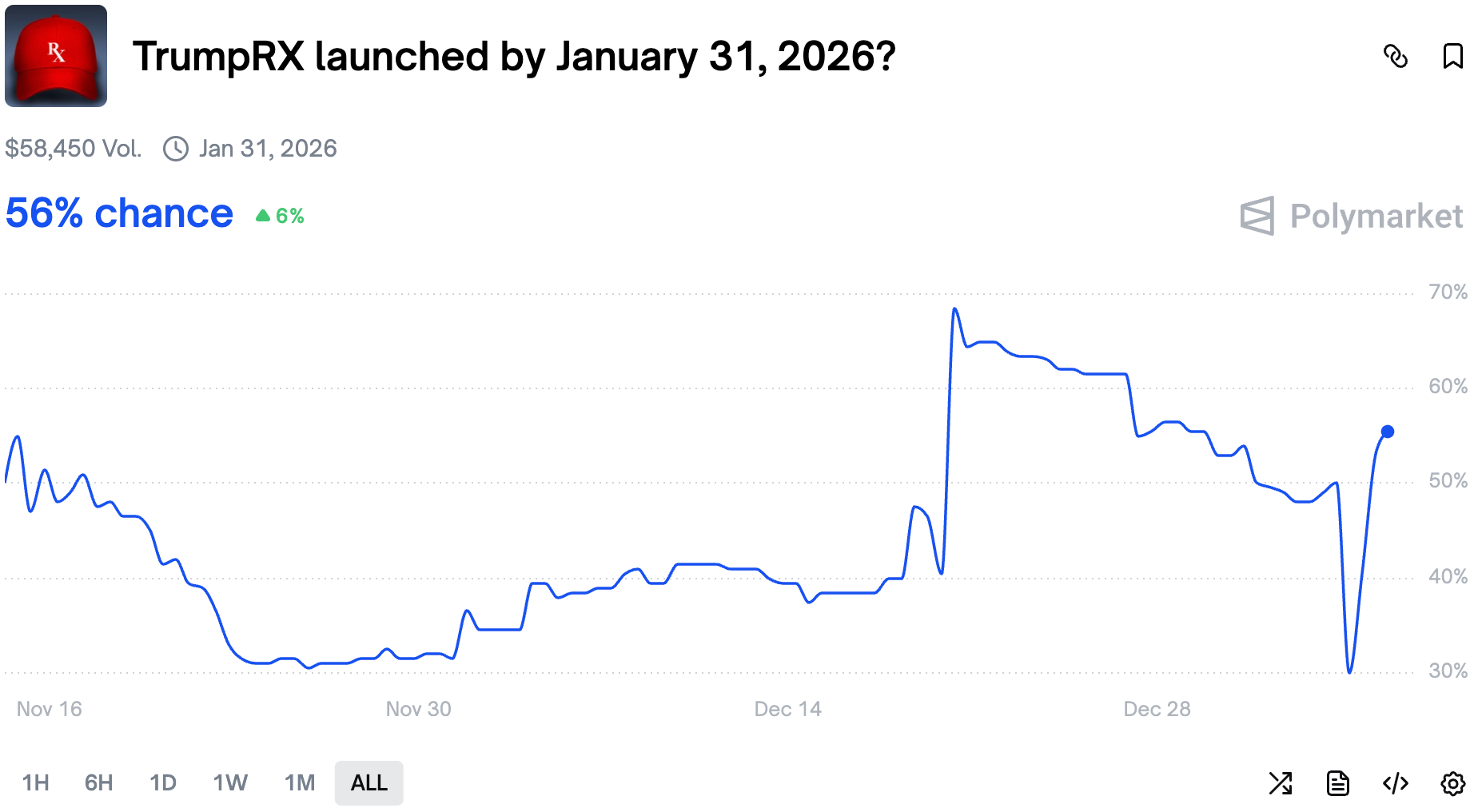 After a brief slump in odds, traders once more see strong chances Trump will launch his pharmacy project this month.