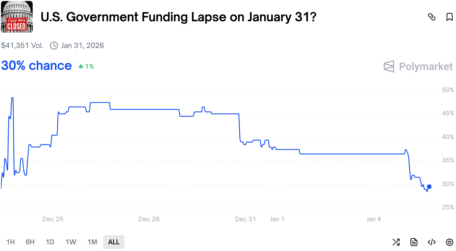 The record shutdown from last year was ended by a continuing resolution till the January 30th - if the Congress fails to agree on another continuing resolution or a proper budget bill, we can see another partial shutdown by the end of the month.