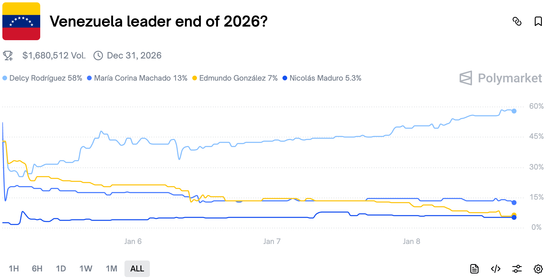 Traders are more and more certain Delcy Rodriguez will be the leader of Venezuela till the end of the year.