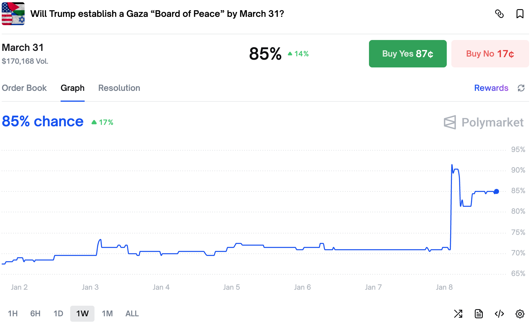 The chances rose sharply after Times of Israel published an article describing how Trump plans to unveil the Board of Peace, along with other elements of the phase 2 of the ceasefire, next week.