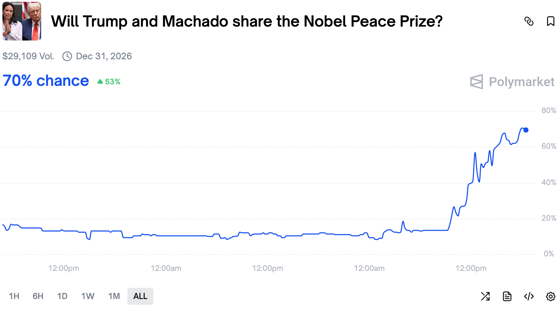 Well, Trump is meeting Machado and he mentioned that he wouldn't mind Machado sharing the prize with him.