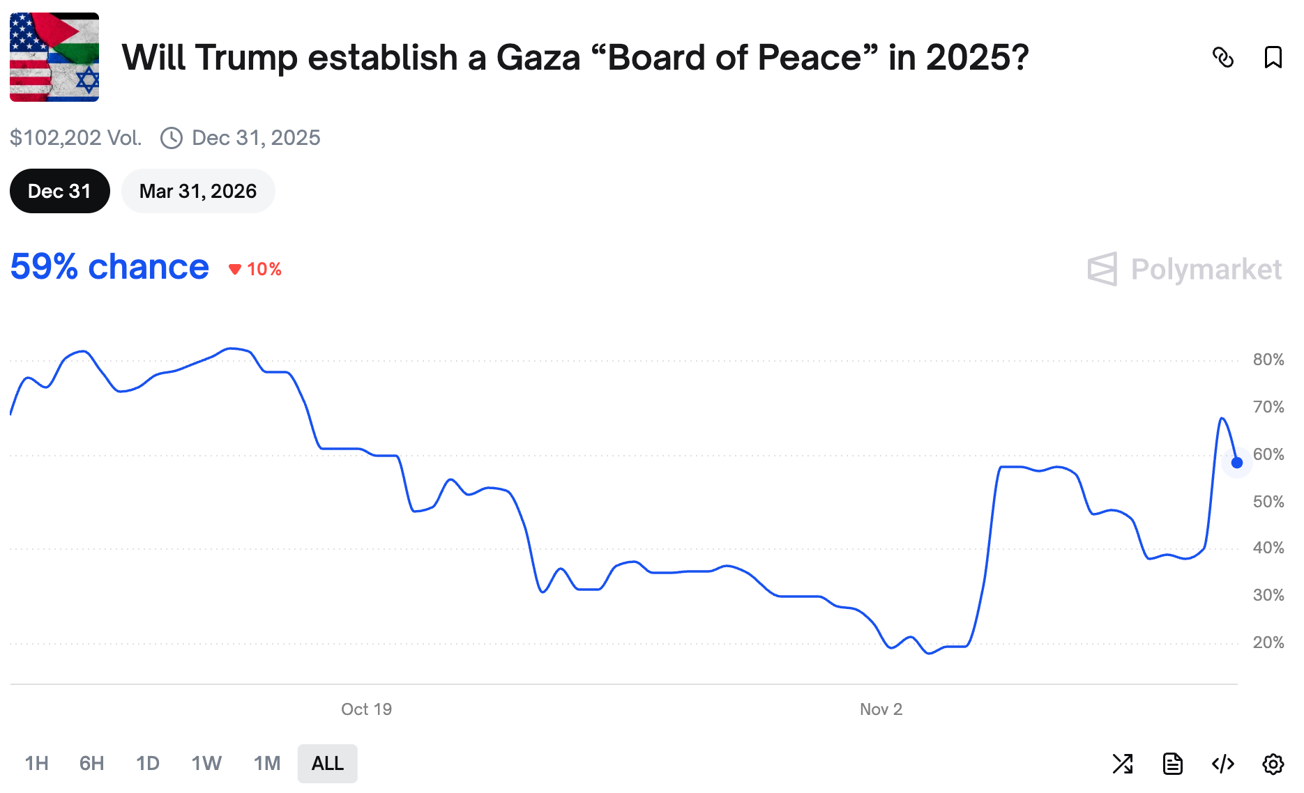 Odds of a Gaza Board of Peace being created this year surged again.