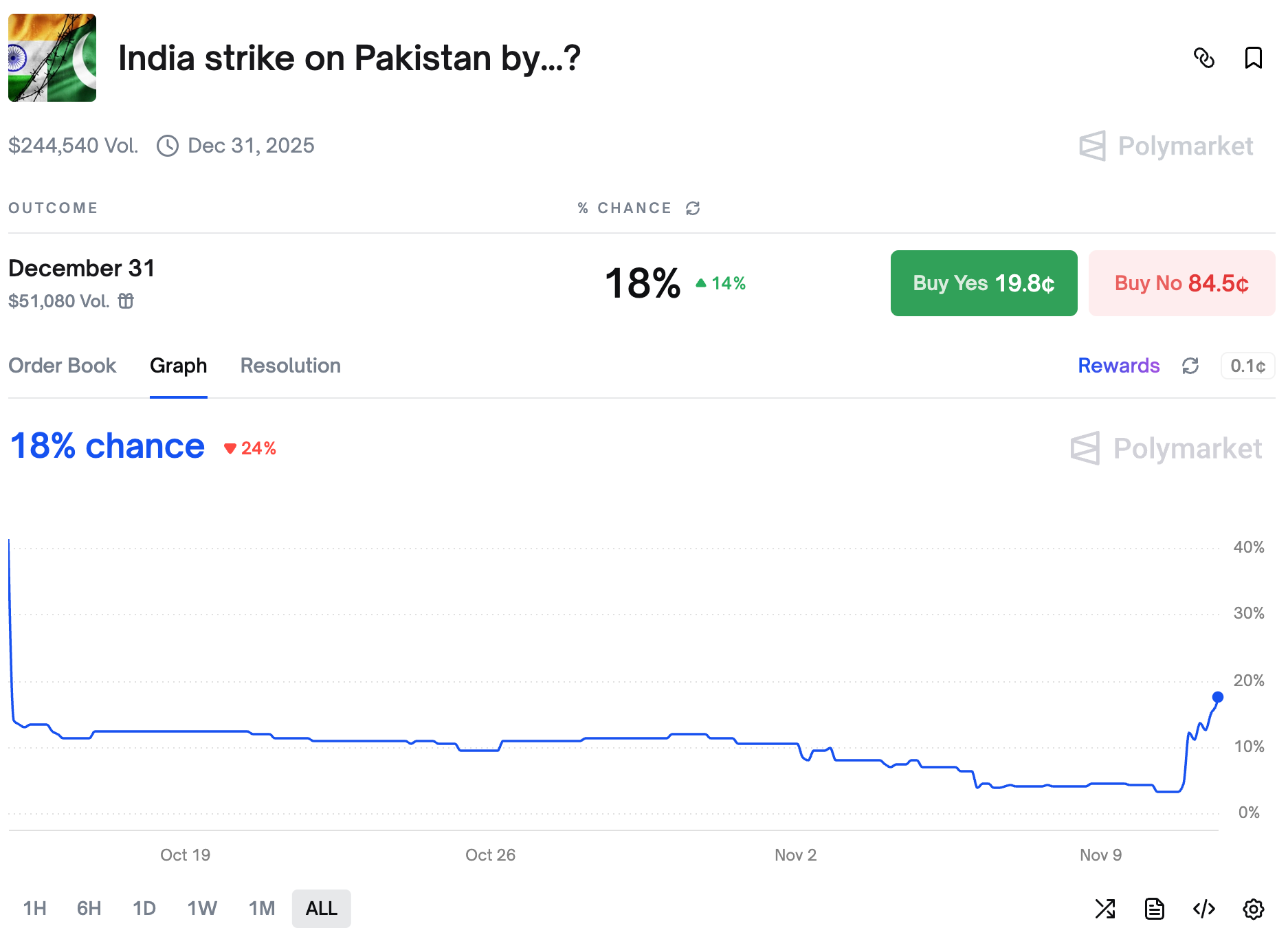 Traders adjusted the odds of Indian strike on Pakistan after a terrorist attack.