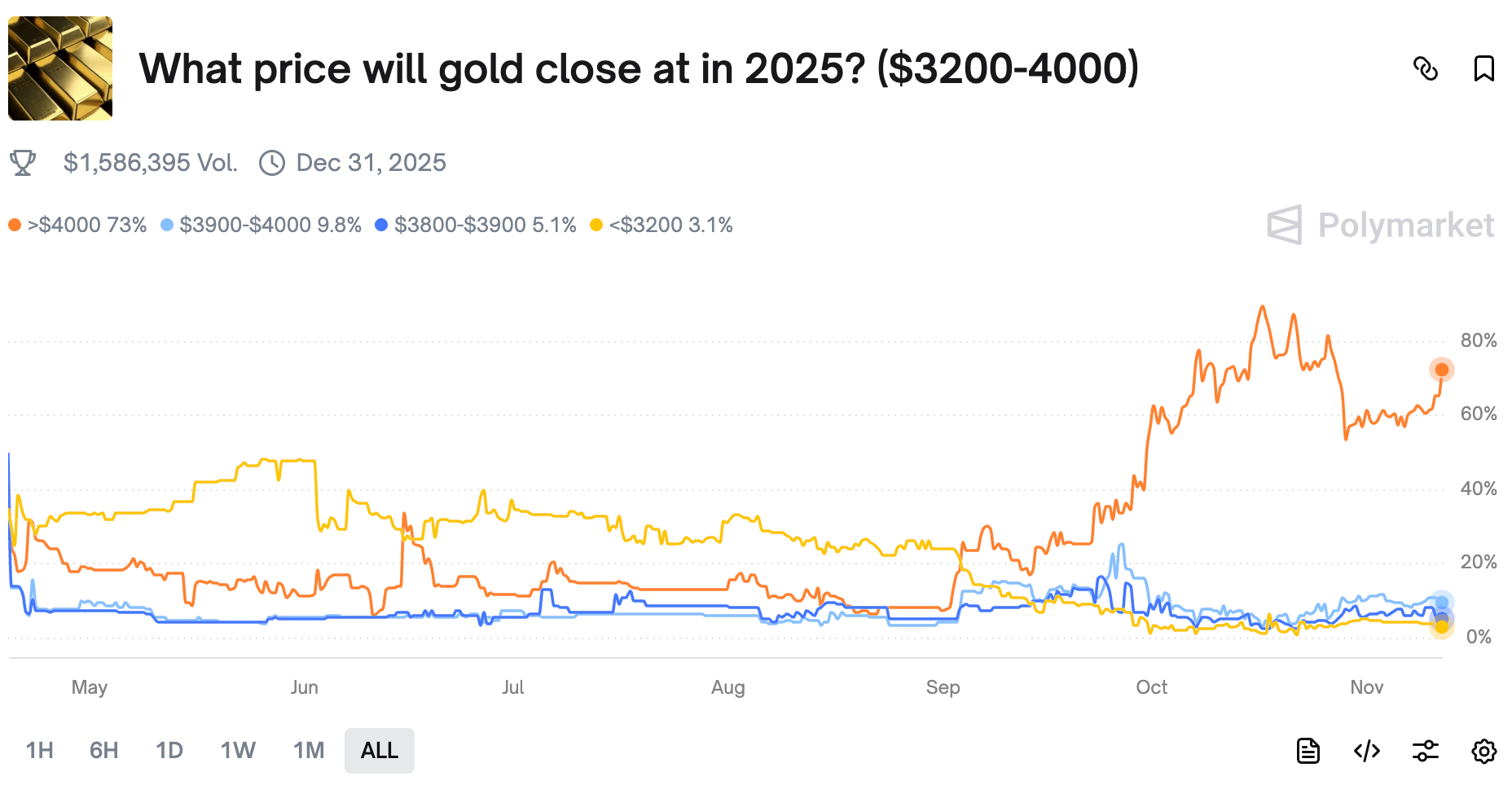 Gold had an amazing run this year, rising over 57%. However it had a bit of a slump recently, dropping just below $4,000. Now it is on the rise again, gaining 4.4% in the last 5 days.