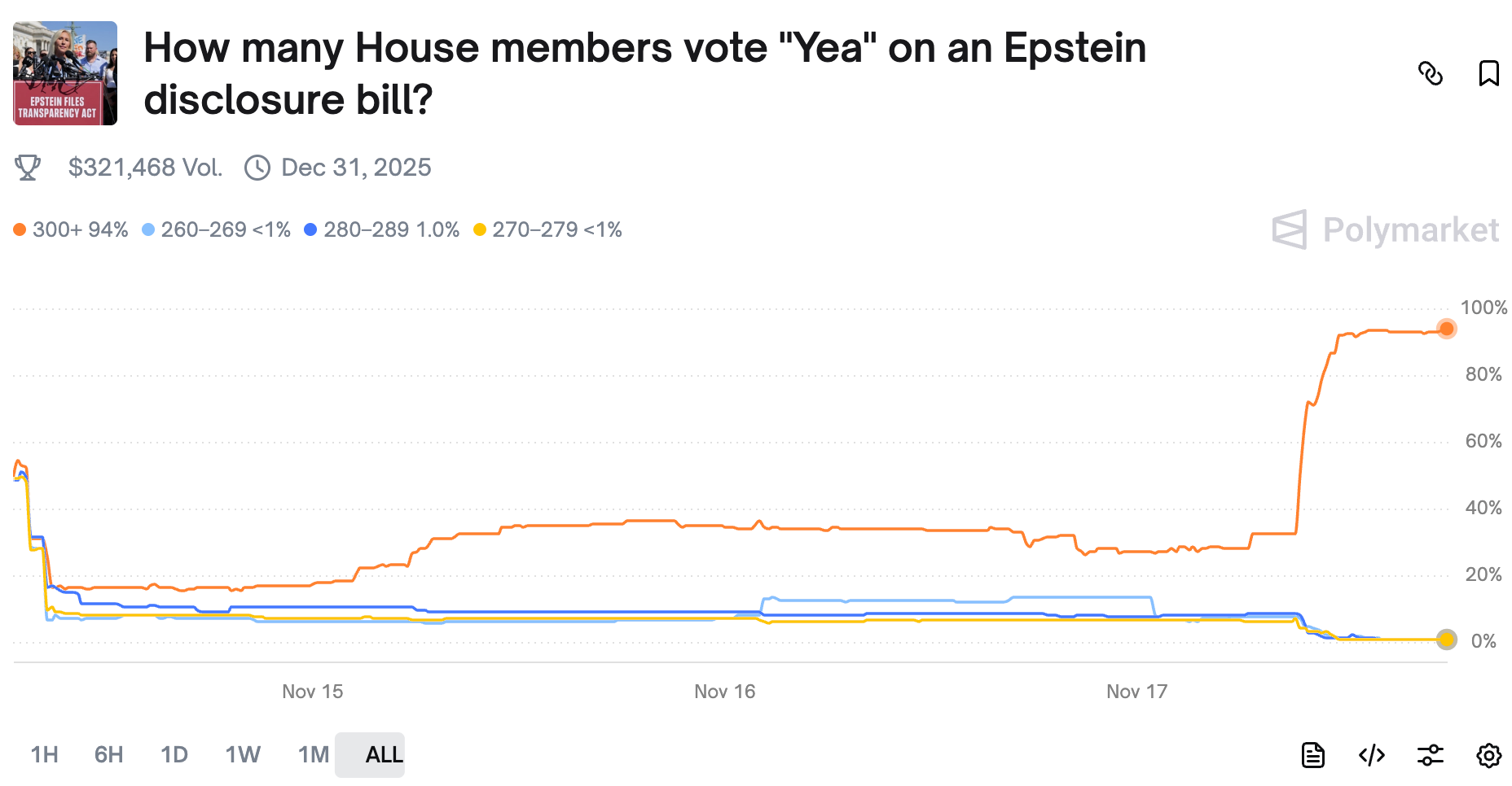 Traders are now confident we will see over 300 House members voting for the release of Epstein files.