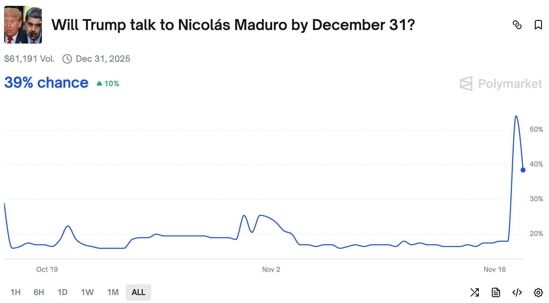 The odds of a Trump x Maduro conversation surged after Trump suggested he might negotiate with Venezuela.