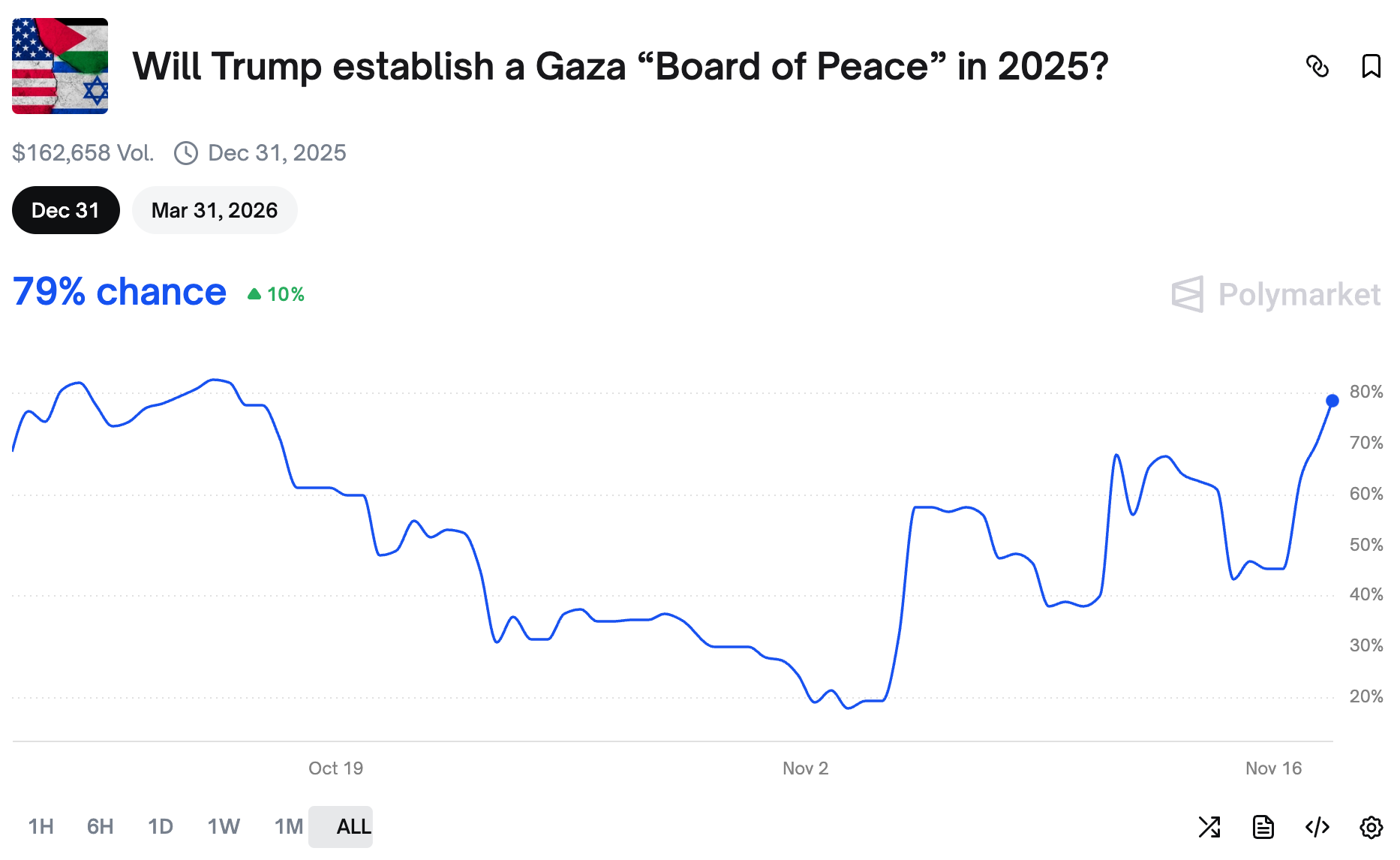 Odds of Trump establishing a Gaza Board of Peace surged yet again.