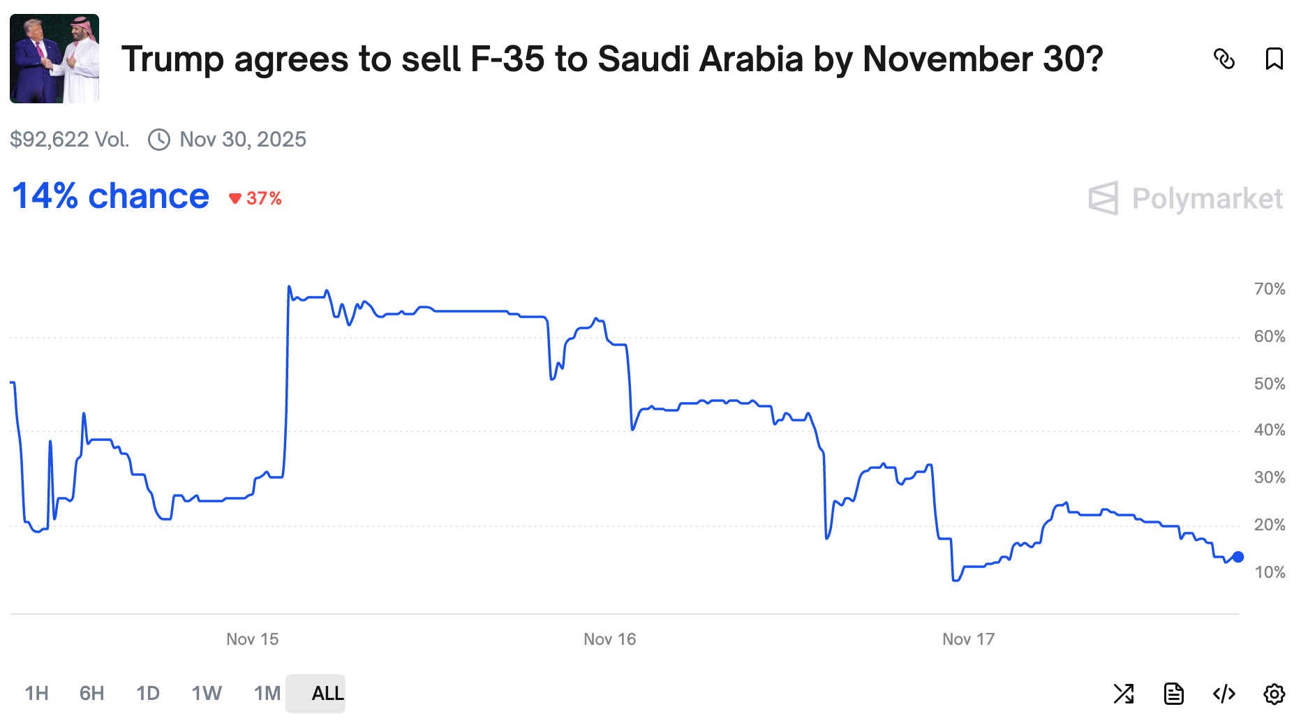 Despite Trump's announcement a few days ago, traders don't think that Trump will agree to sell F-35 to Saudi Arabia.