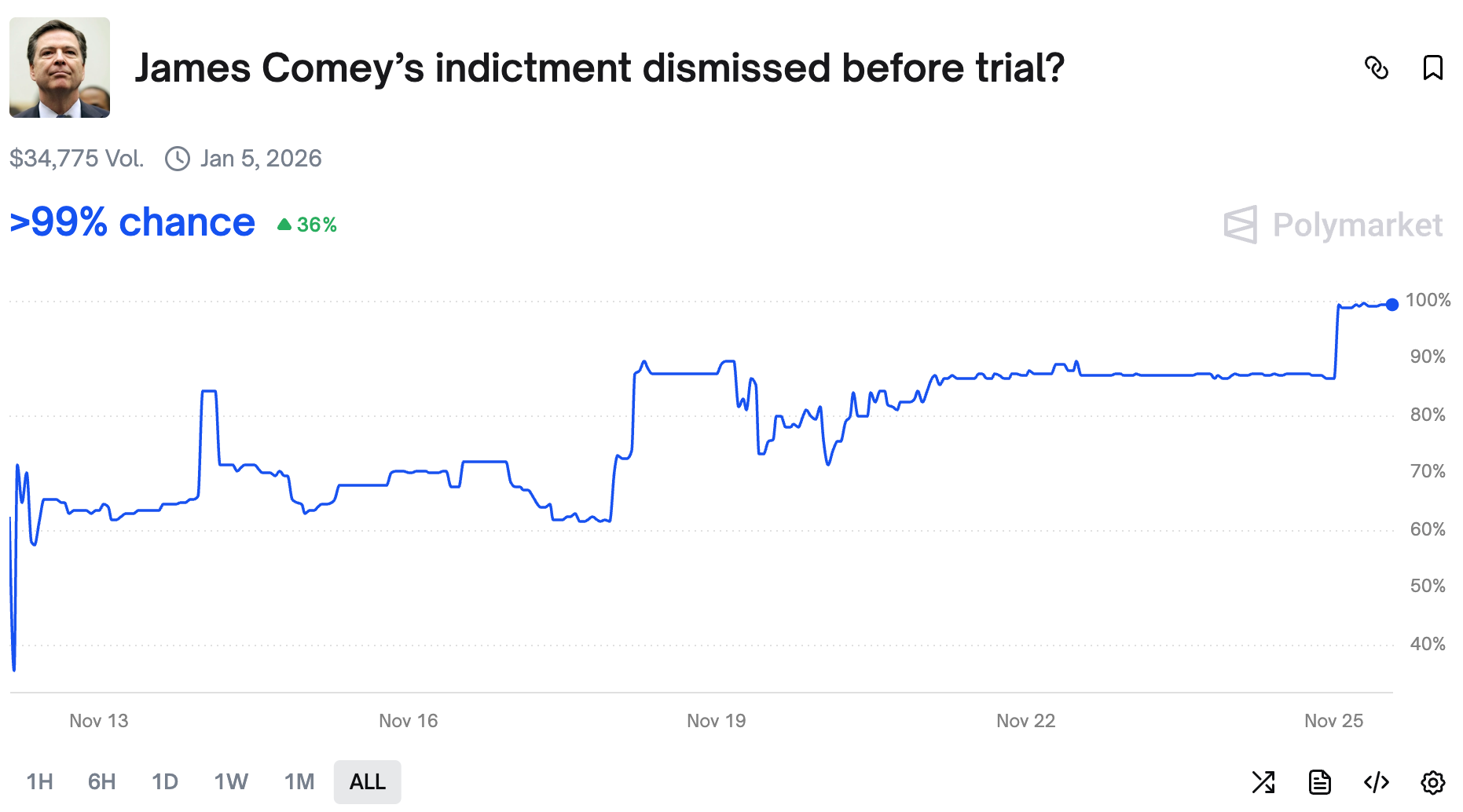 It's not only Comey - Letitia James is also spared trial (for now). The judge dismissed both cases due to the prosecutor being illegally appointed. A cunning catch, but something tells us it might not be the last chapter in this story.