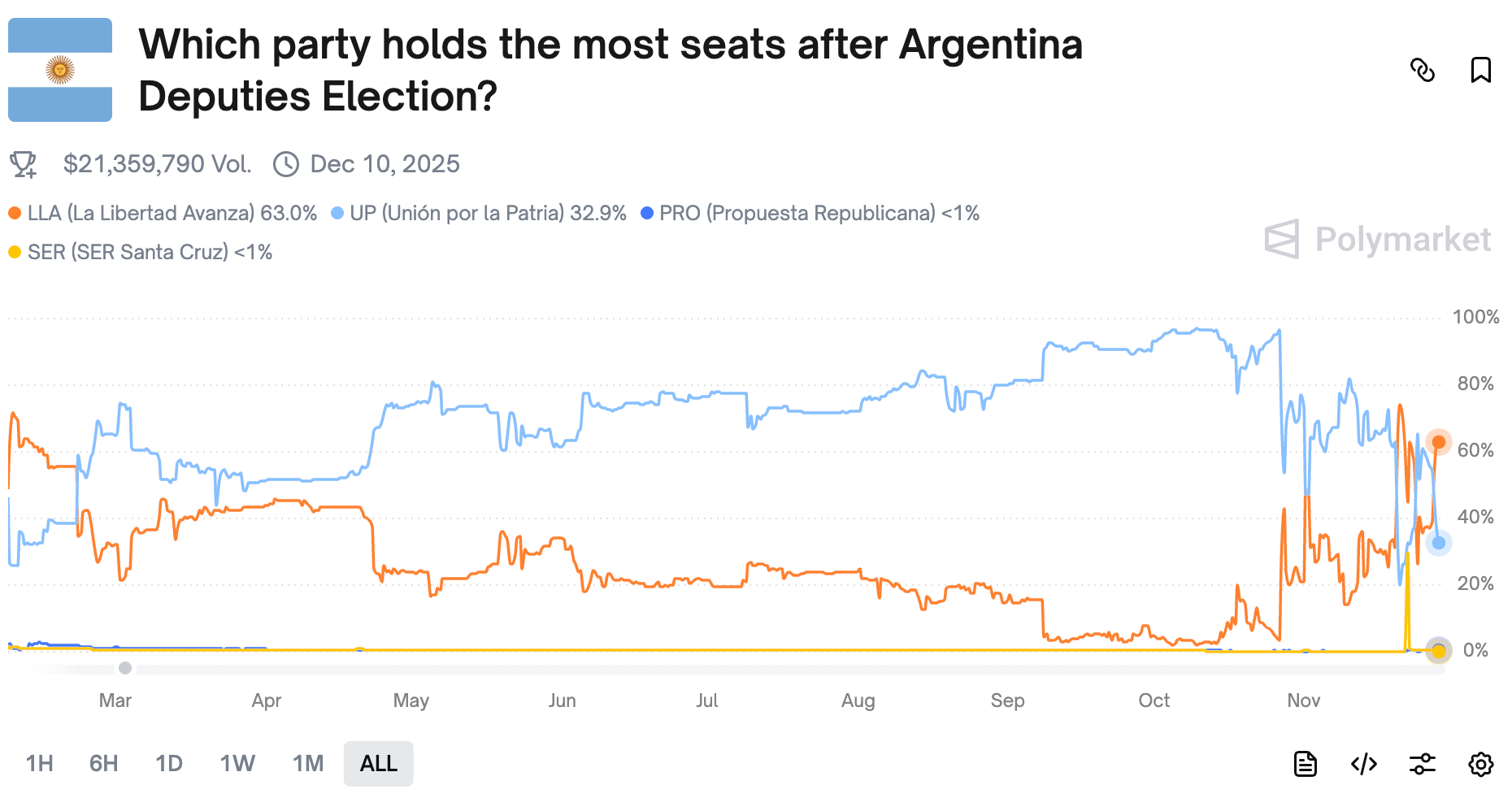 Currently the Argentinian media expects LLA (the party of president Milei) to succeed in the end and secure the first place, however they still will be short of majority, currently expected to hold around 110 seats.