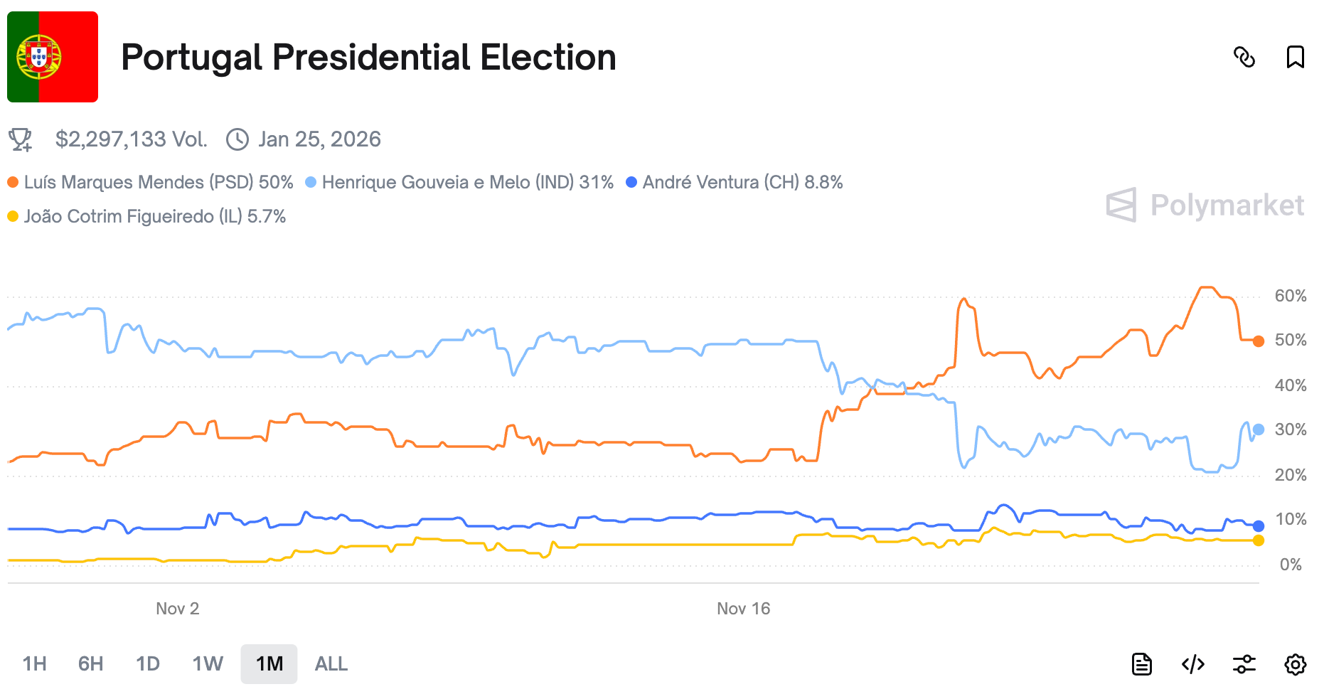 With less than two months left till the Portugal Presidential Election, traders are once again moving towards a 50/50 between two leading candidates.