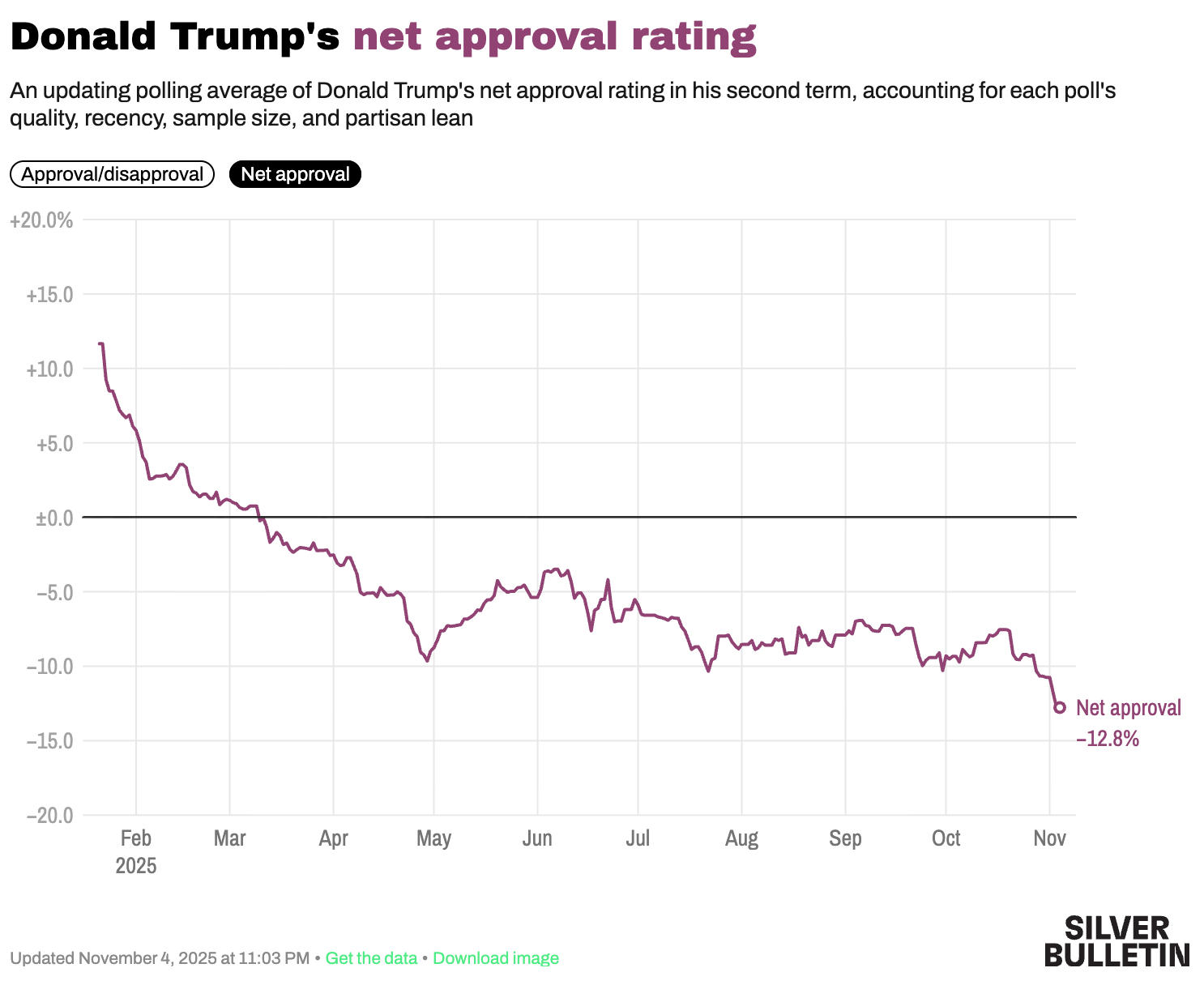 Trump chaotic policies are not up to people's expectations and last night's results are a canary in the coal mine for 2026 midterm elections. Trump needs to work on his dismal approval rating to give Republicans a fighting chance: