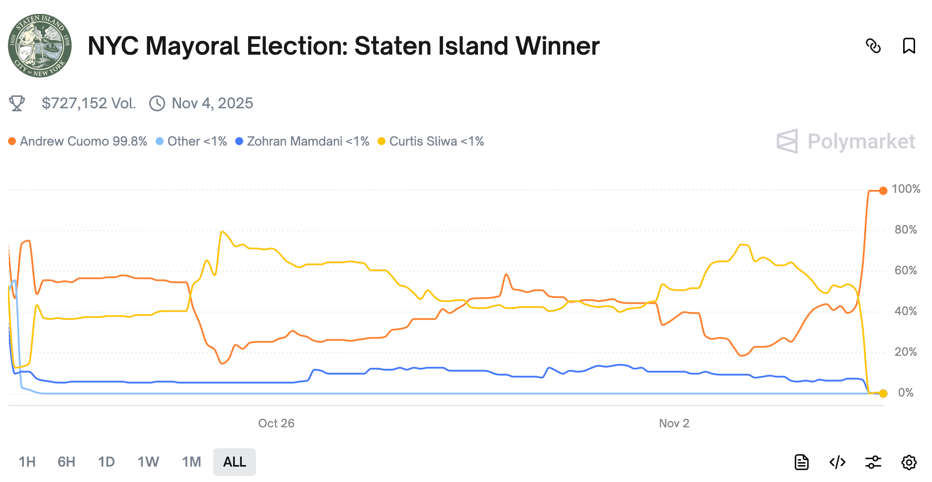Andrew Cuomo did win in Staten Island after we caught his odds are rising yesterday.