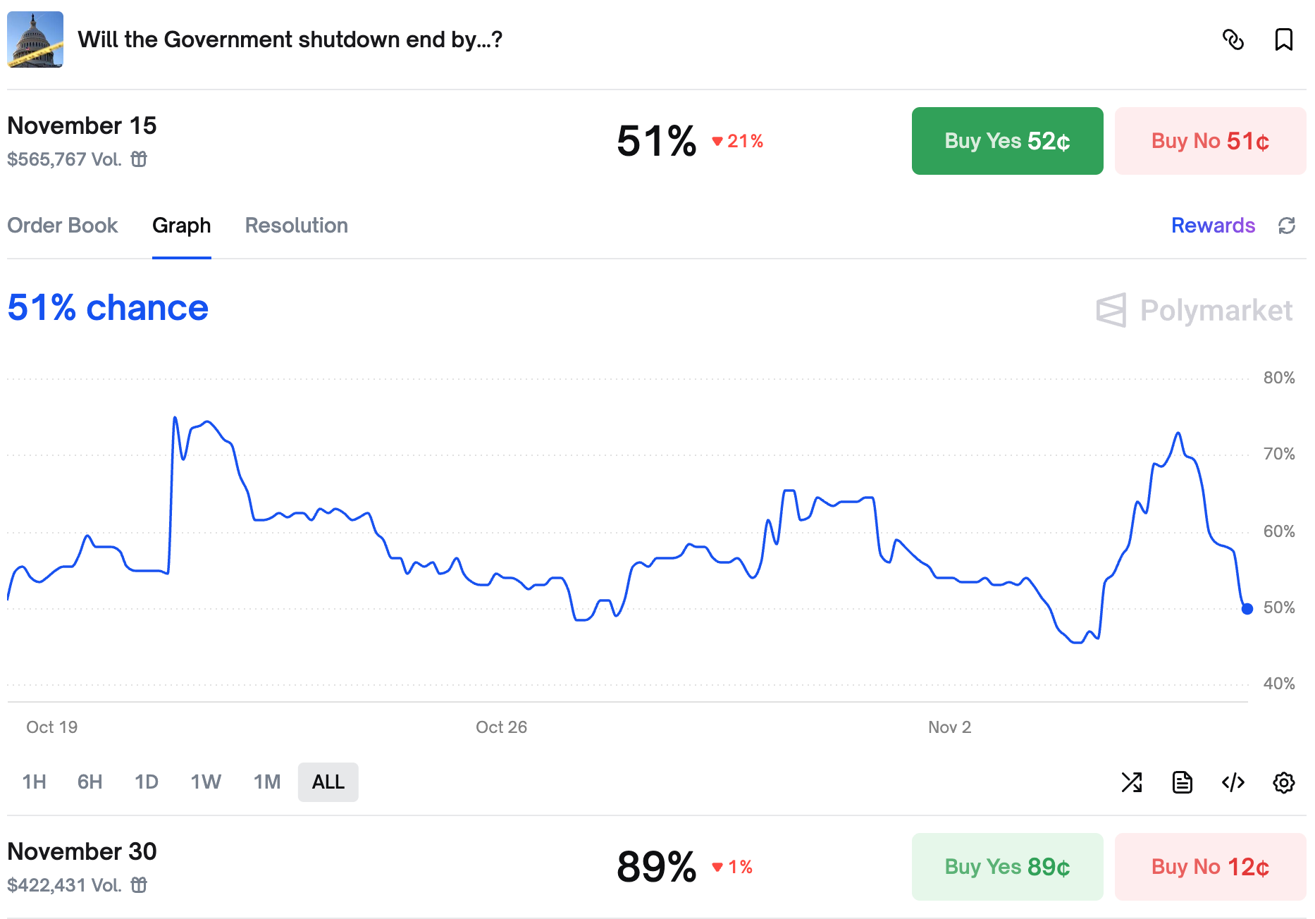 Traders are increasingly bearish on a quick end to the shutdown, but they see one happening by the end of the month.