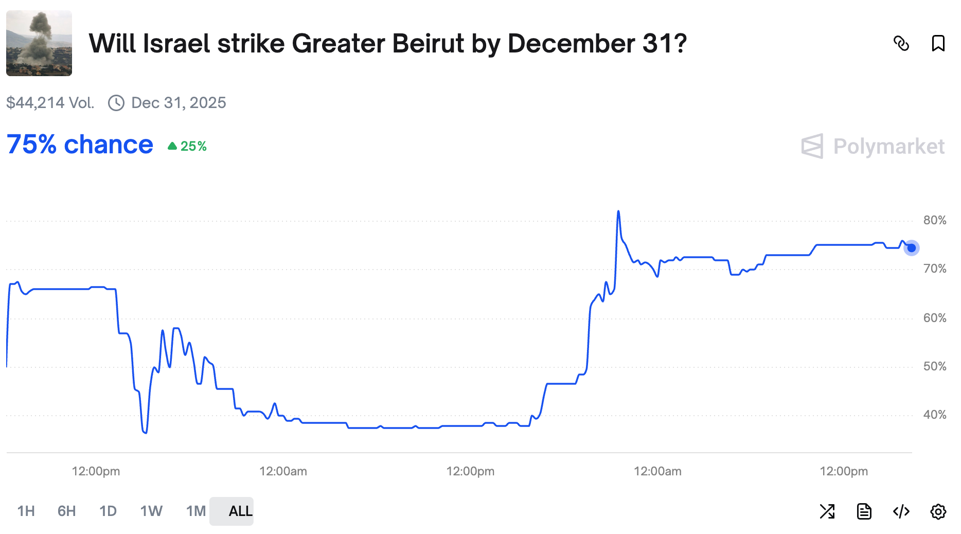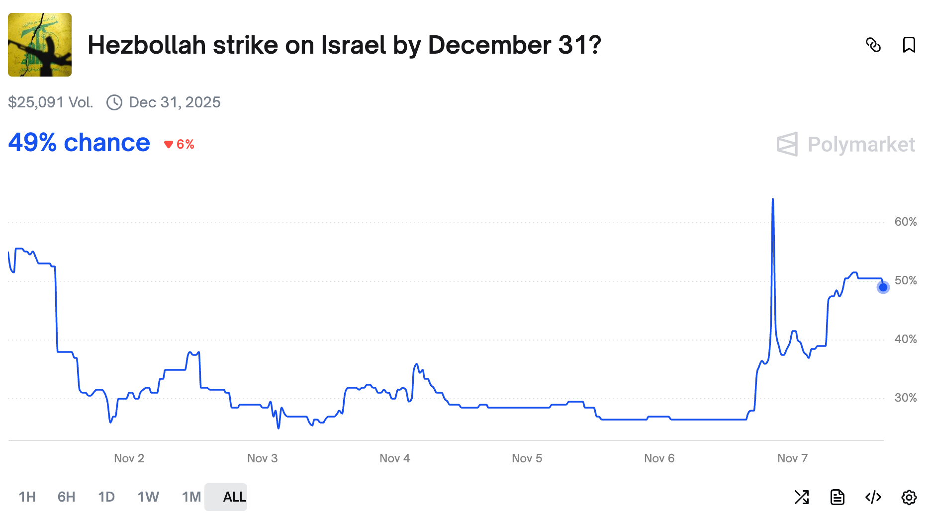 Tensions have been high for a few weeks now with almost daily strikes on Lebanon. However now Hezbollah is establishing a stronger posture, refusing to disarm and vowing to defend itself as long as Israeli strikes continue. Traders are now pricing in a high chance of retaliation:
