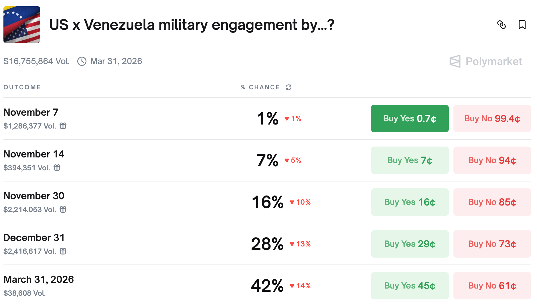 Despite Congress refusing to block Trump, one trader bet almost $300,000 on No, moving the odds significantly in the process. Their comments suggest that they are betting on Trump being the president of peace. From our perspective the trader has the vibes of other peace trader, SatoshiAncap - be your own judge when it comes to determining whether it is signal or noise.