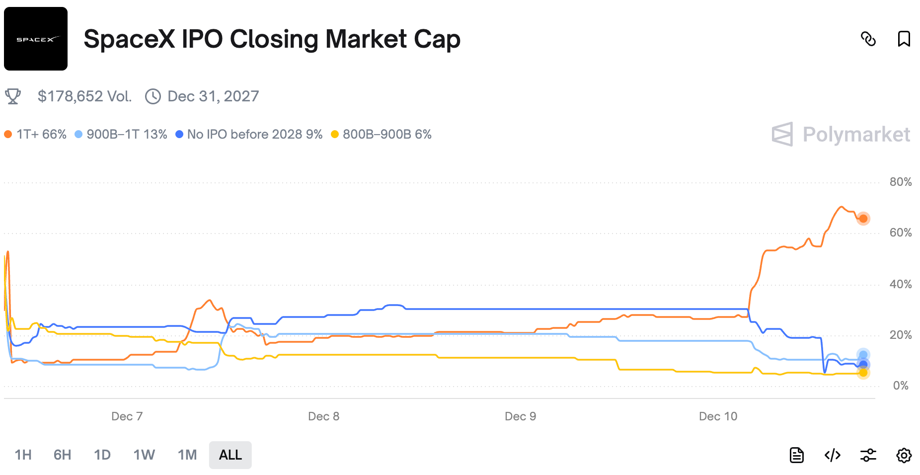 Bloomberg reports that the company is looking to raise over $30 billion in an IPO in 2026. SpaceX is targeting a valuation of around $1.5 trillion, putting it next to Saudi Aramco's IPO, the biggest in history. Considering SpaceX is almost a monopolist in its industry, traders are confident about the valuation despite the long timeframe.