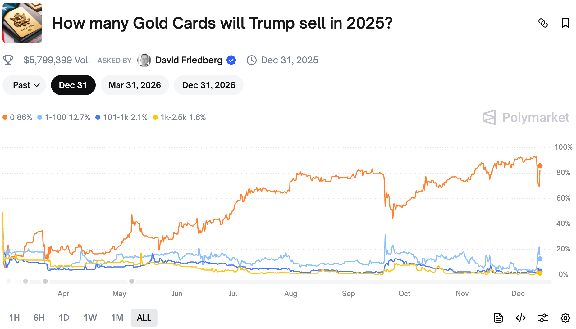 After it was announced that Trump will begin selling gold cards, traders scrambled to adjust the odds.