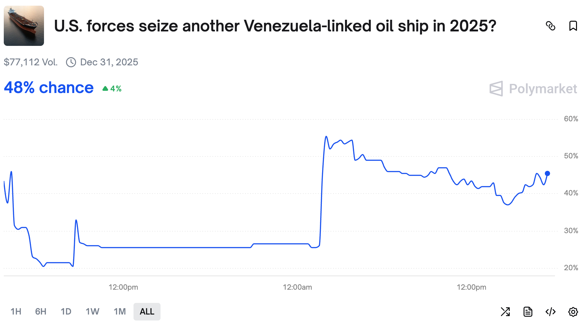 Yesterday we learned that the US sized a tanker off the coast of Venezuela - today we learn that there is 48% chance it happens again this year!