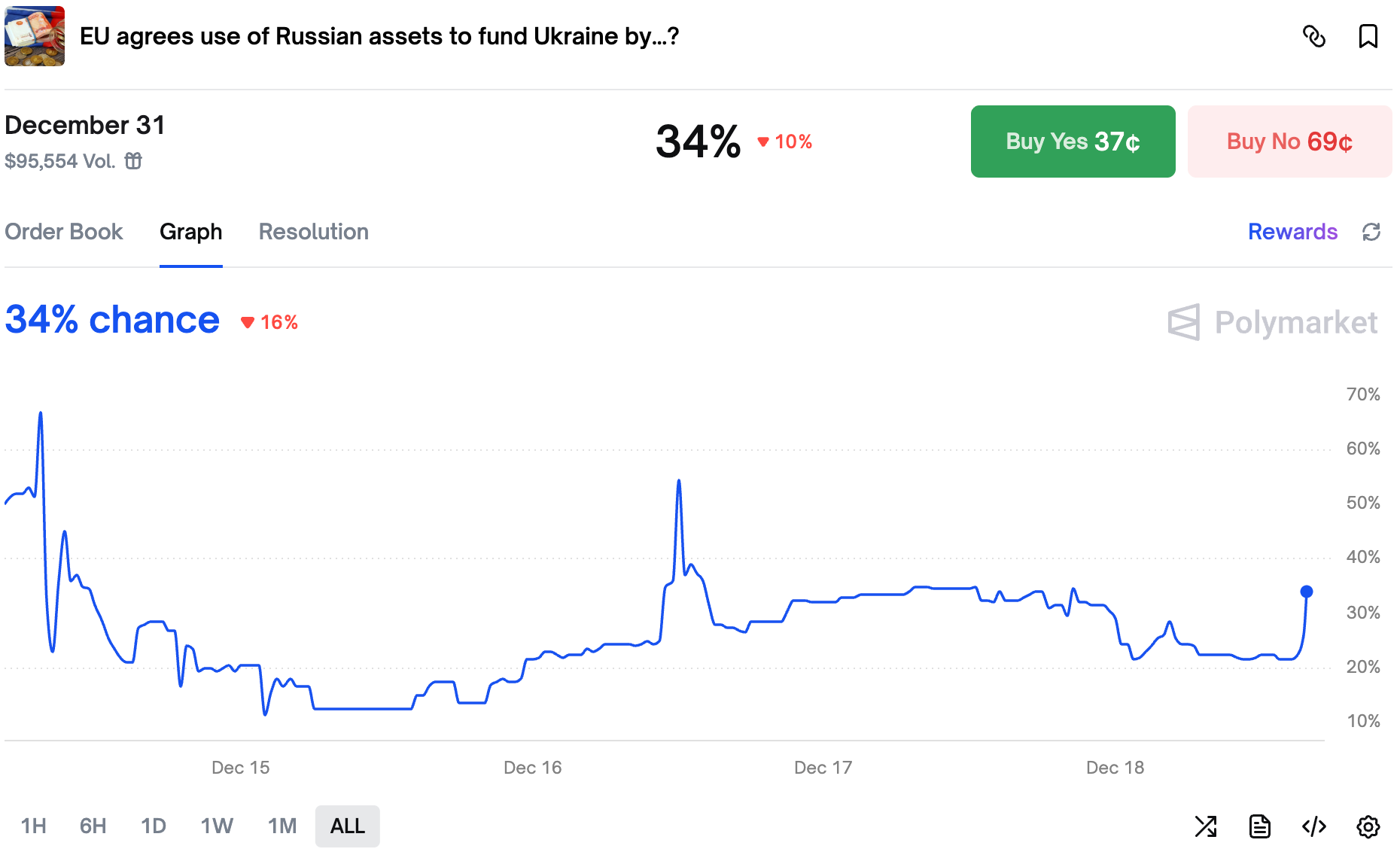 The odds spiked initially on the rumors that the Chinese special envoy is coming to Thailand and Cambodia to mediate a ceasefire. However, the current Thai PM debunked the story in his last interview. With only 13 days till the end of the year, chances for a ceasefire are slim without any visible effort from either the US or China.