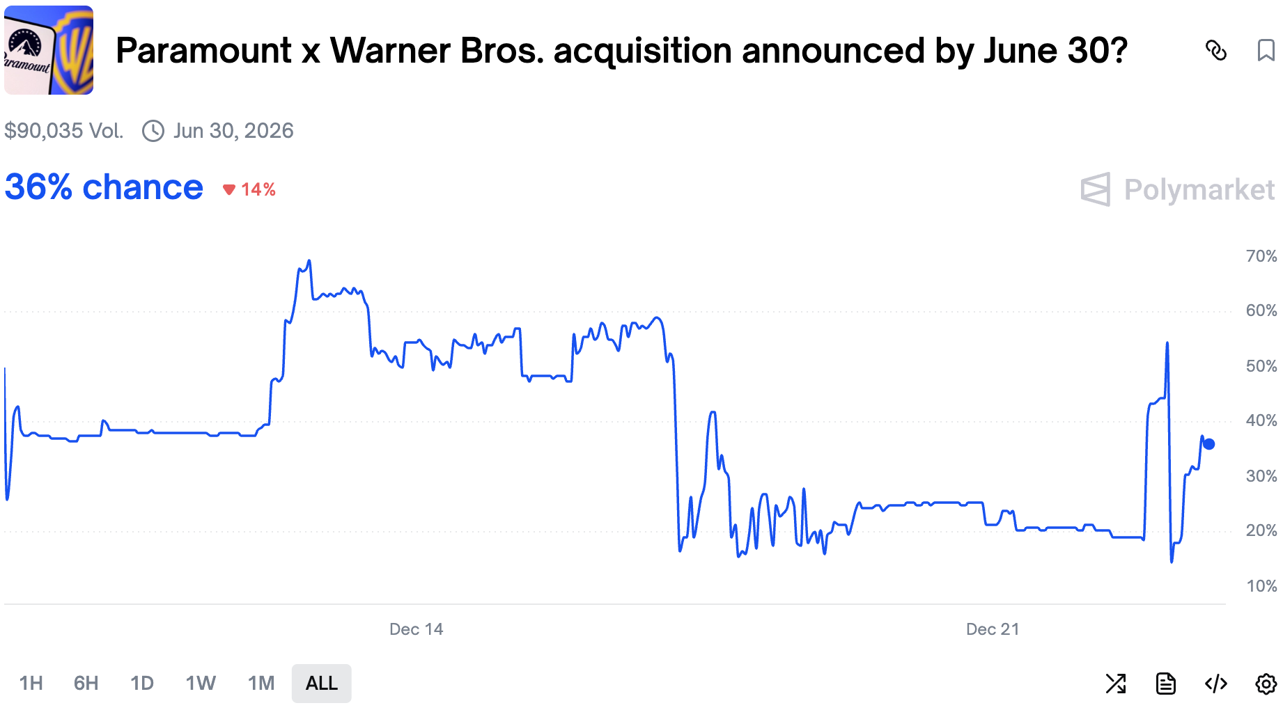 Additionally Paramount upped the break fee to $5.8 billion. All in an effort to prevent Netflix from gaining near-monopoly on streaming market. Warner Bros. is the owner of HBO MAX service. If Netflix manages to close the deal, it will be the biggest streaming service provider, having close to 50% of global market share.