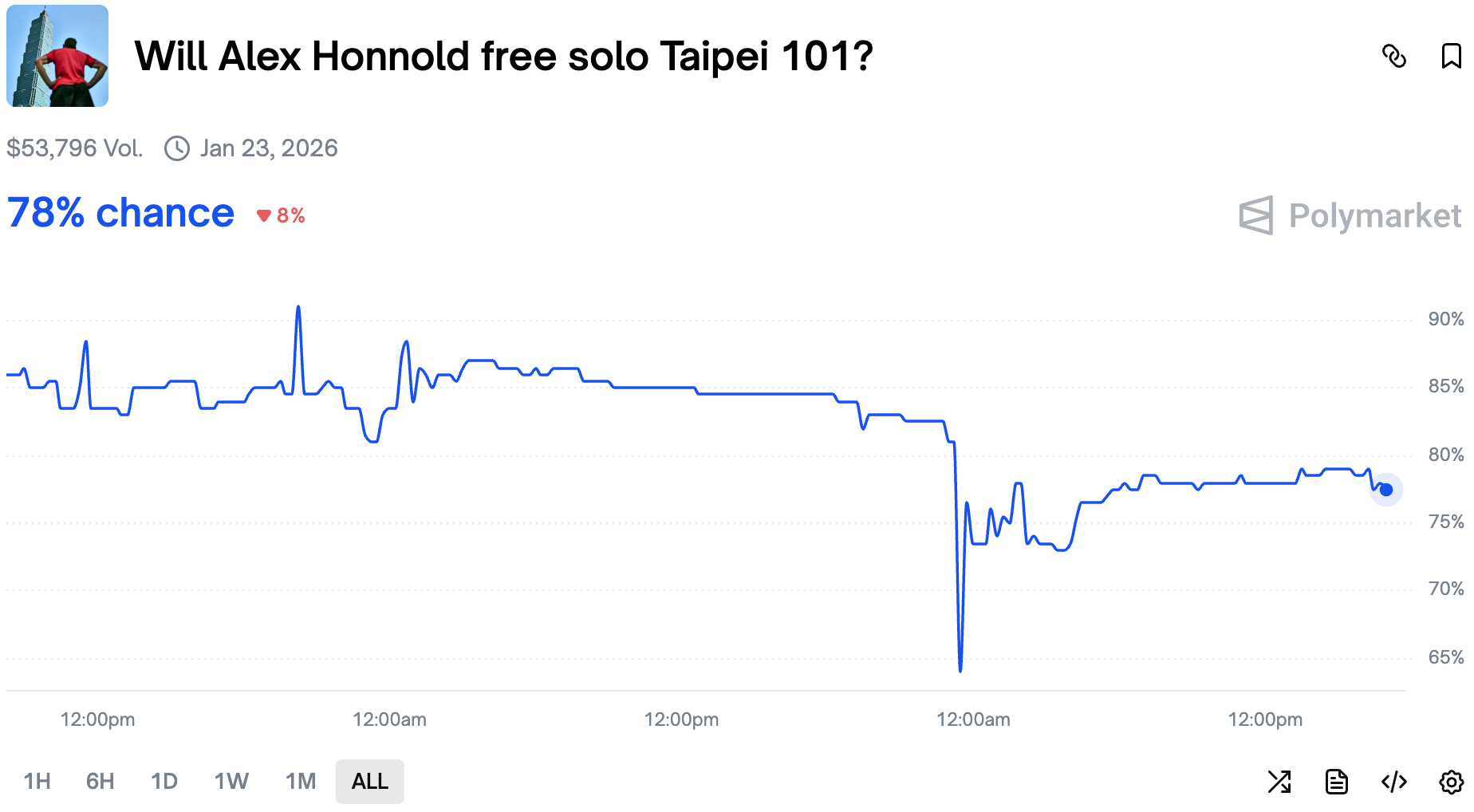 In the spirit of predictifying everything, traders are now scrambling to price how likely Alex Honnold is to free solo Taipei 101.