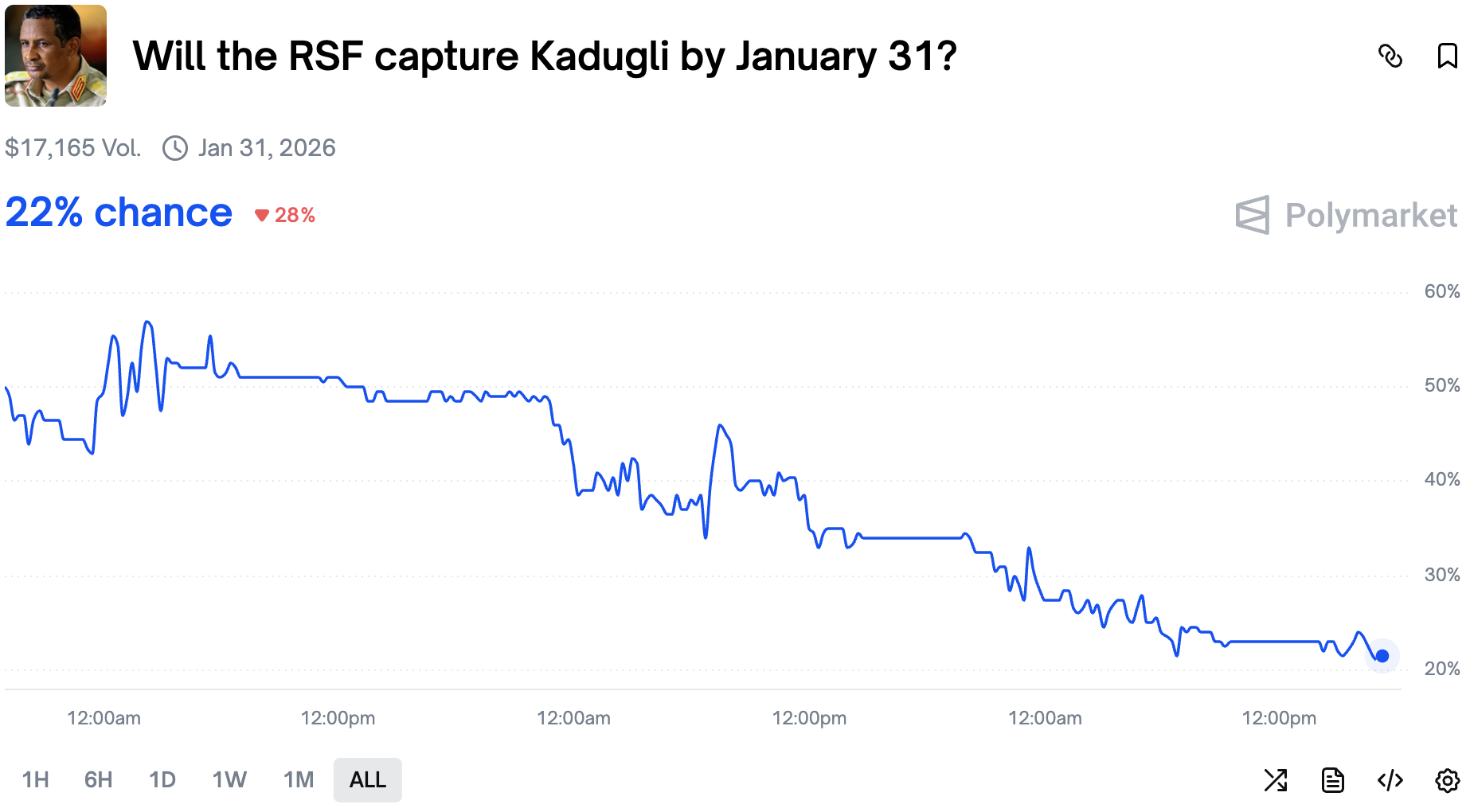 Traders assess it is unlikely we see RSF capturing Kadugli by the end of January. Despite the UN evacuating and the city being under siege by RSF, traders see a prolonged fight for Kadugli.