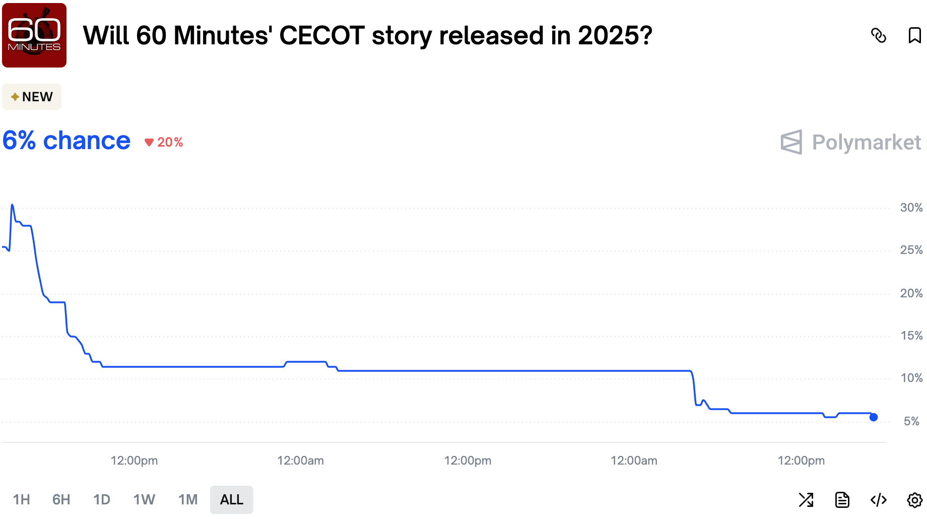 After a bit of drama online, traders think it's unlikely we will see the CECOT story on 60 minutes.