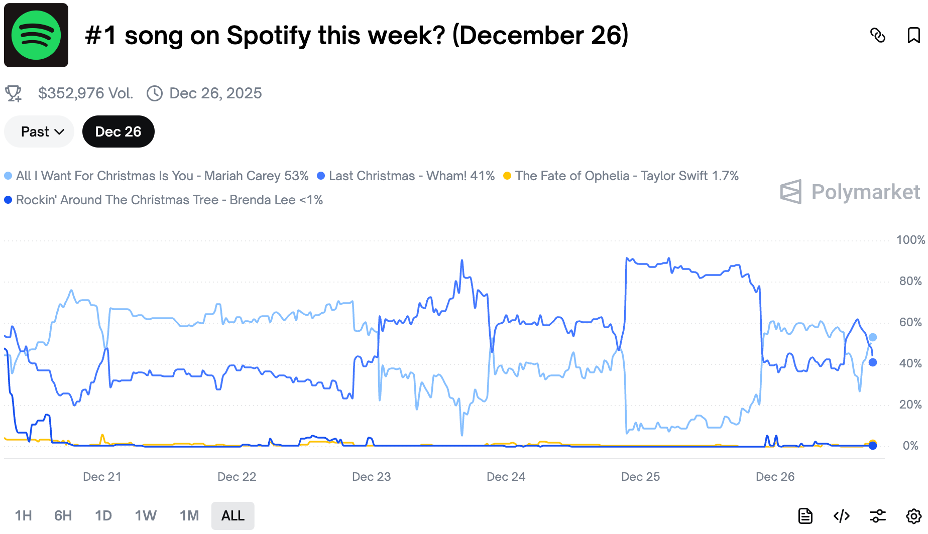 Traders are joking about looping their favorite in the background as both songs trade around 50c, despite both having a large lead before. Every single stream matters and this time traders are taking it very seriously ;)
