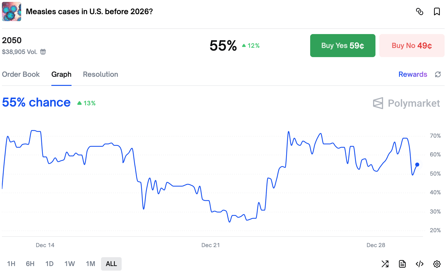 2 days left and traders are not sure if we will get 2,050 measles cases.