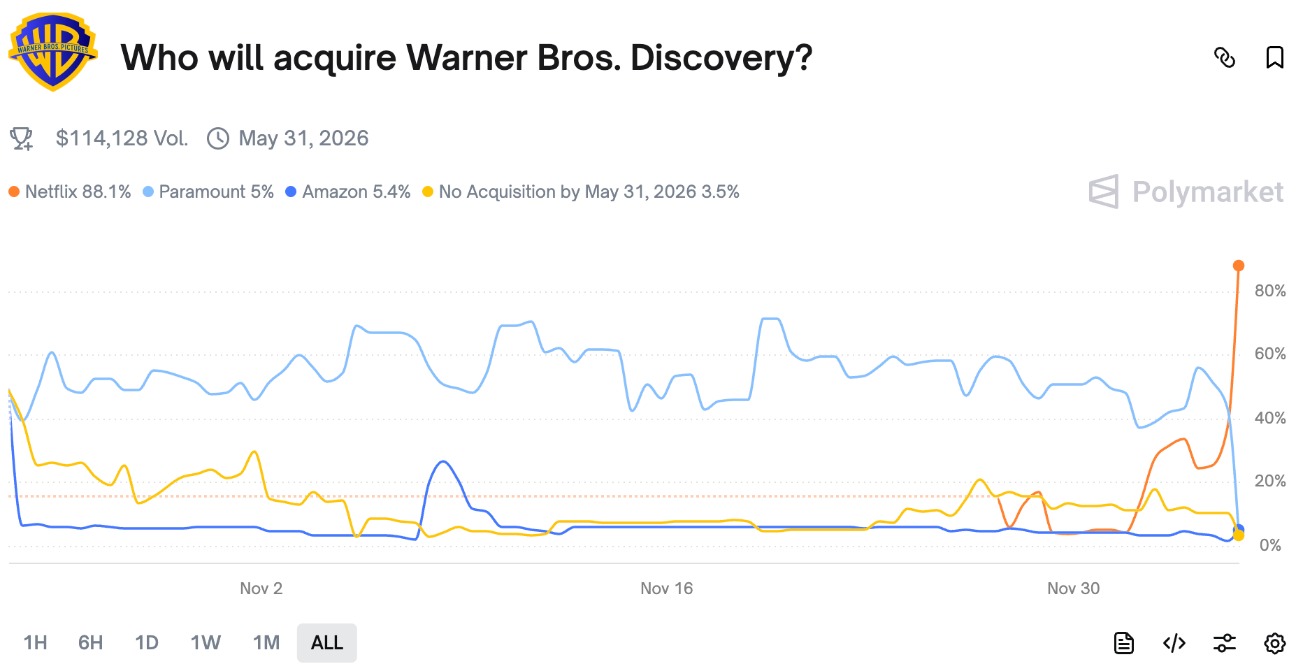 Traders were surprised on the Warner Bros acquisition market as I (PROPHET) am wondering how could I miss this market.
