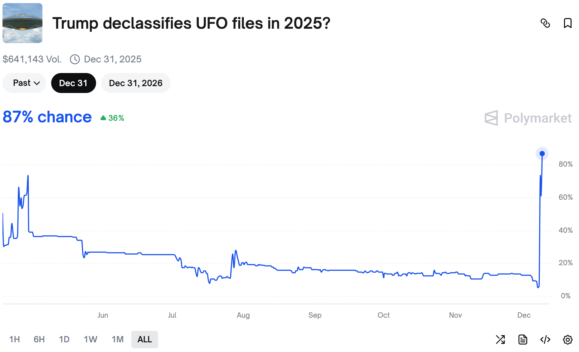 Good morning! 2025 is not disappointing and we get plenty of action after the weekend - from moves on the deportations market to UFO disclosure, there's never a boring day on prediction markets.