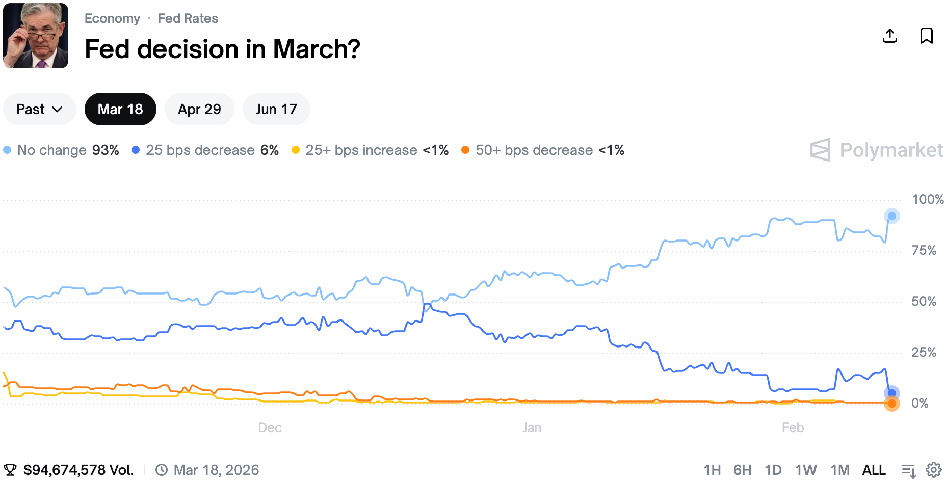 Traders were already pricing in a pretty high conviction of no change in interest rates in the next FOMC meeting, but now the market seems virtually certain.