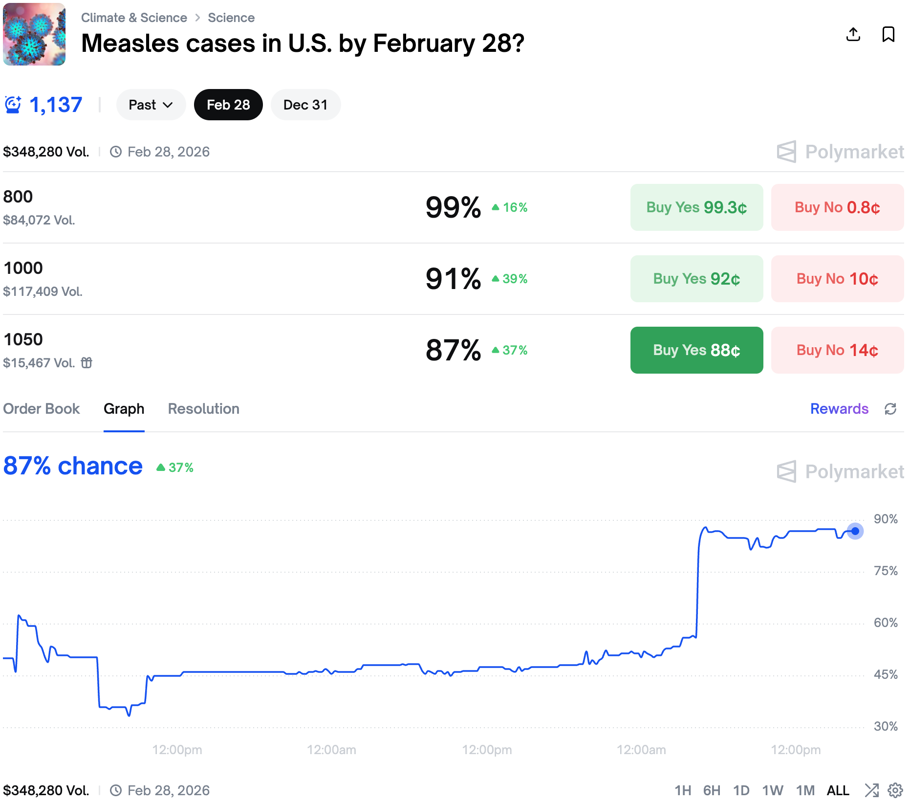 We are once again turning our attention to measles as after the recent update, Polymarket traders adjusted their forecast sharply.