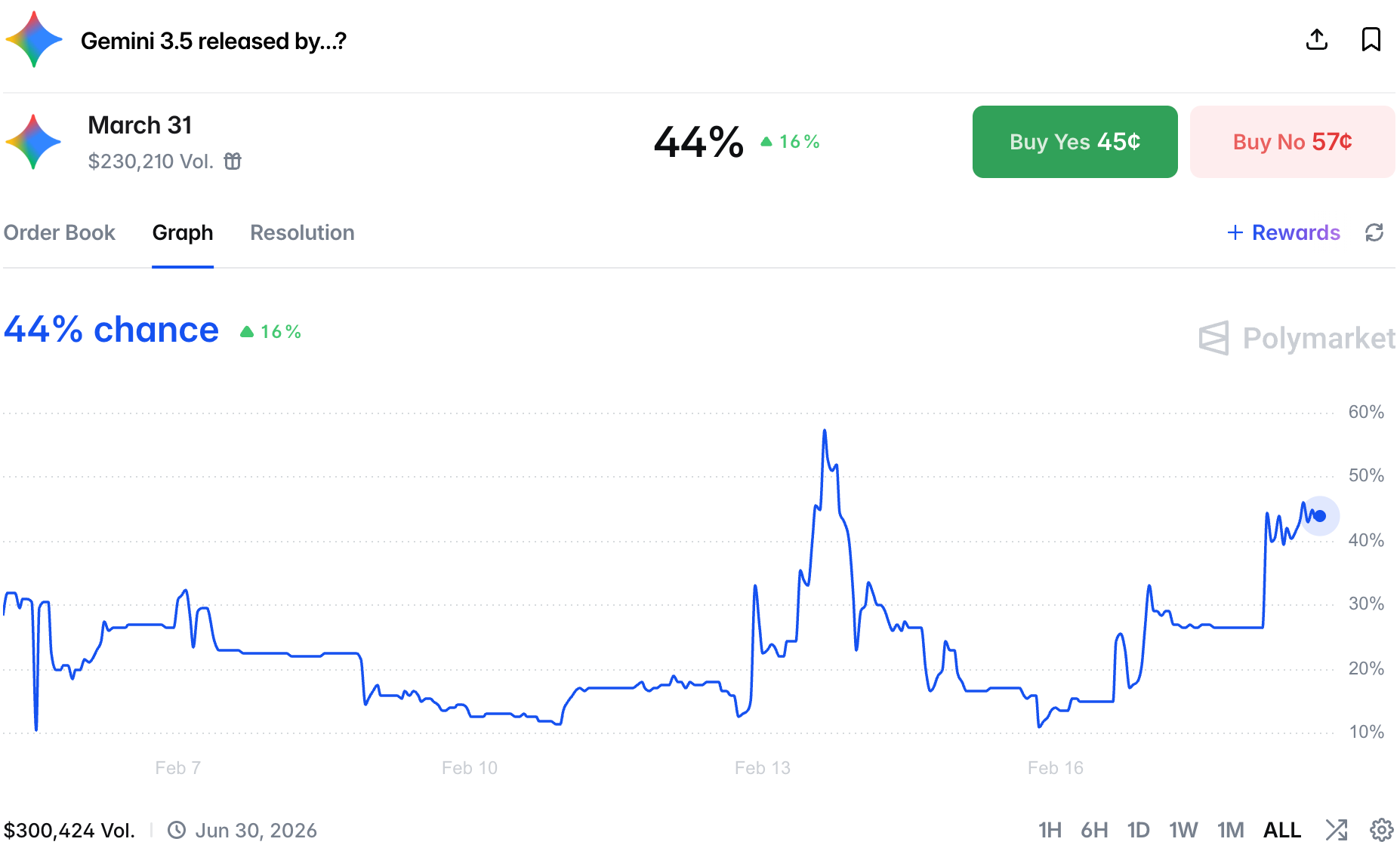 Just a day after Grok 4.20 launched, the Yes price of Gemini 3 successor launch by the end of the quarter spiked.