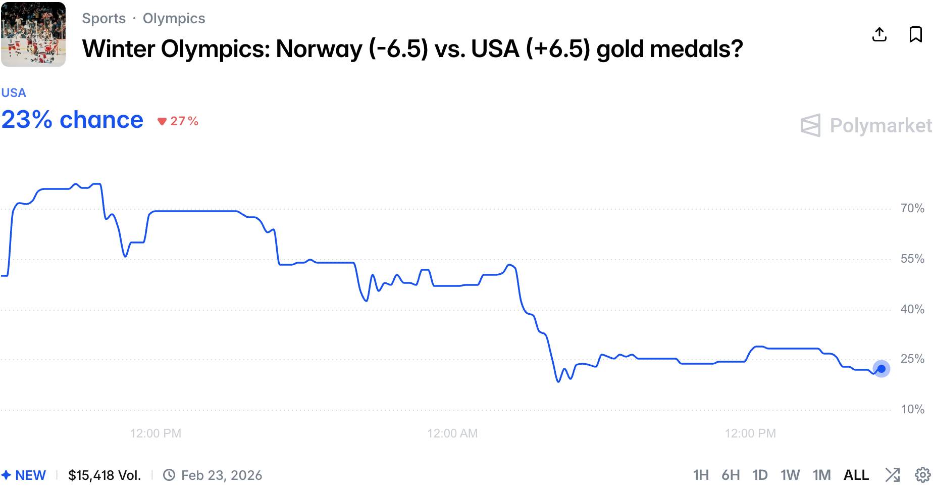 We have a new type of market on the Winter Olympics, and while it shows the Norwegian lead is safe, it showcases a growing number of derivative markets.