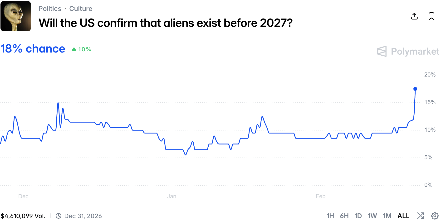 However, the market is not sure it will bring the disclosure everyone's waiting for. There is a long way between showing documents of an unidentified object and outright claiming that non-human intelligence is here.