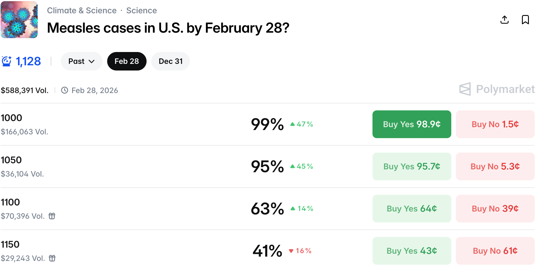 As February approaches end, the markets also converge on the amount of measles cases in the US this month.