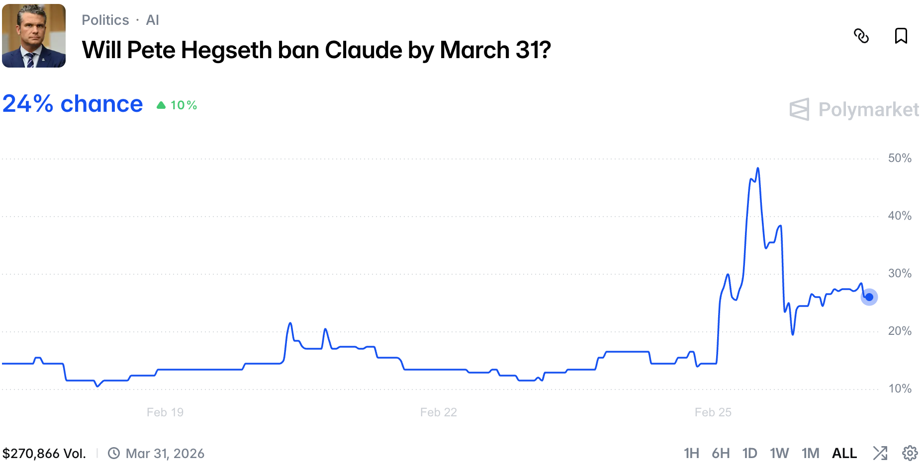 Lastly, yesterday we covered Pete Hegseth being rumored to want to ban Anthropic in the Department of War due to their safety terms.