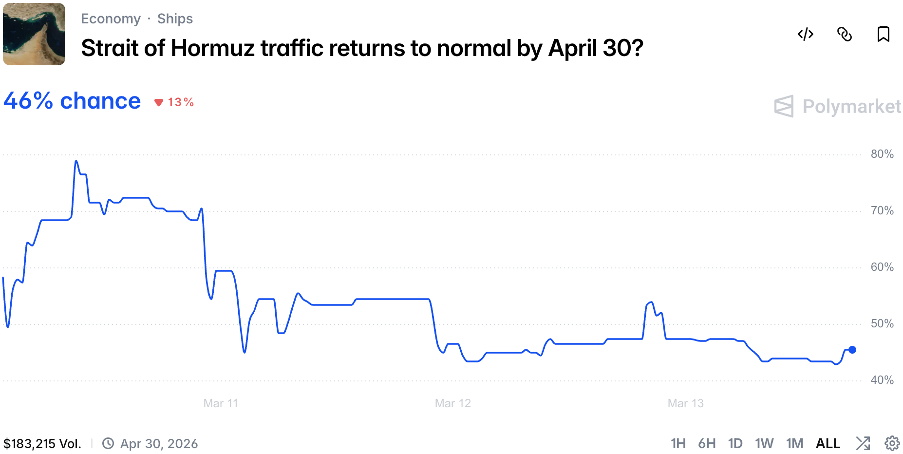 Good morning! It's day 14 of the war and finally we are through. People no longer believe the conflict will end imminently and started to discuss wether it is possible to reopen the Strait of Hormuz.