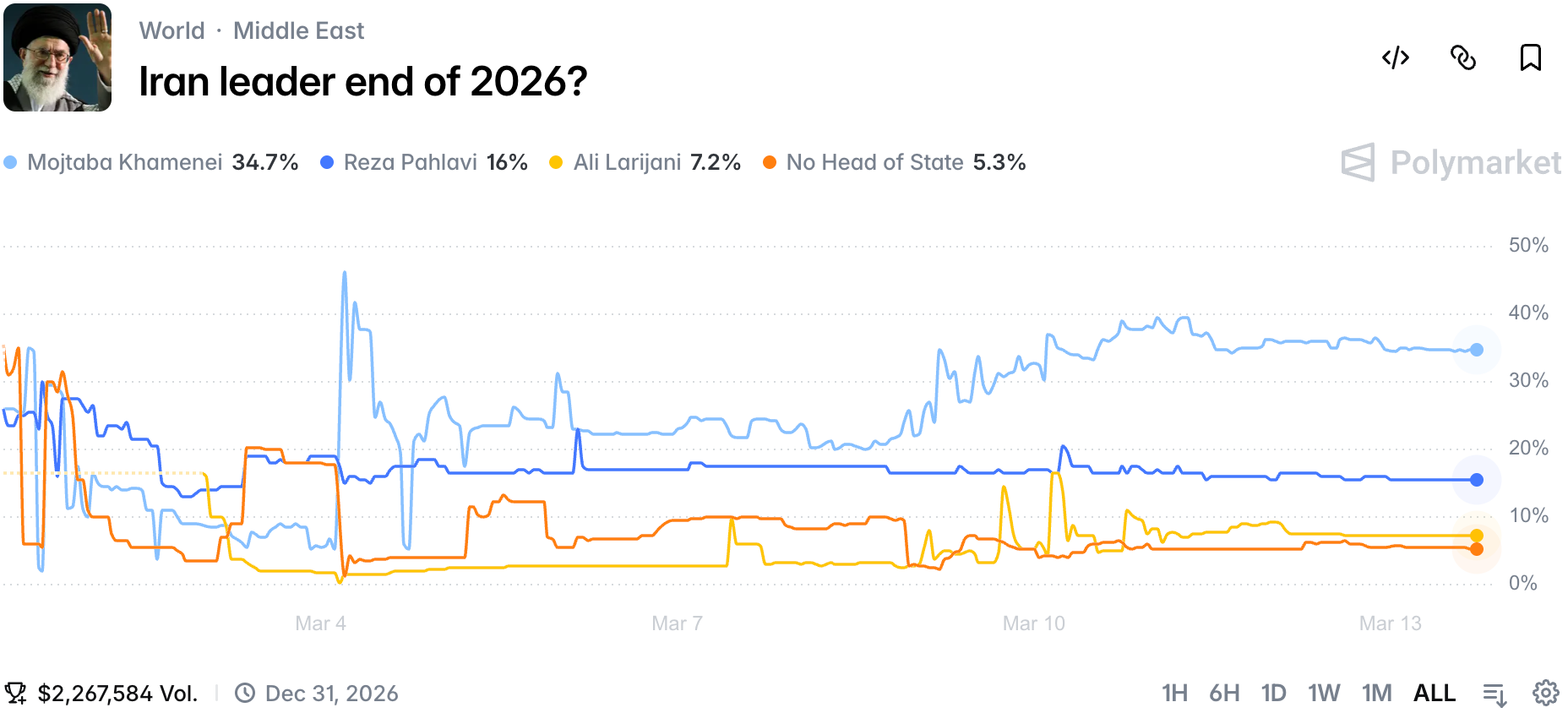 Our understanding of these 2 markets combined is that traders no longer see the US or Israel doing decapitation strikes. They proved to be largely ineffective when it comes to regime fall.