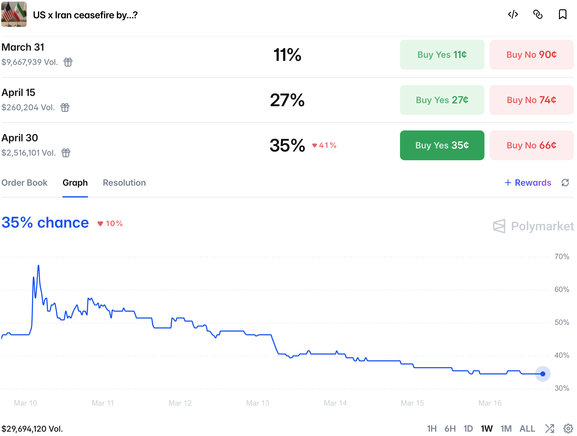 In a week we moved from over 50% chance of a ceasefire by the end of April to only 35% chance today.