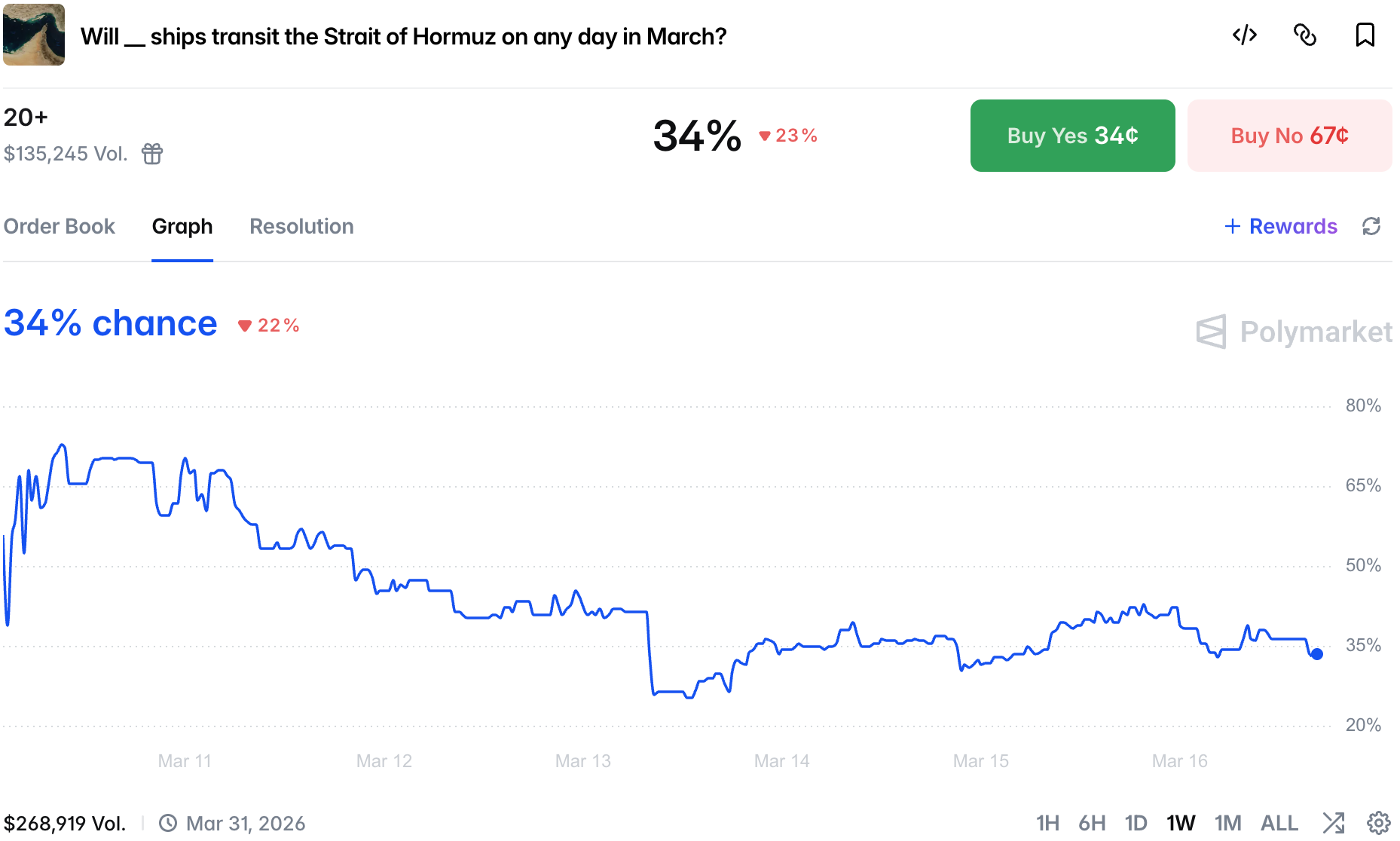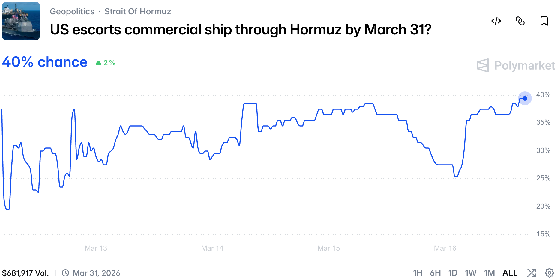 Despite rising, chances are still well below 50%. Mostly the effect of strike date rather than anything else. After all, the US already claimed that at this moment they are not ready to escort any ship and implied was that we must wait for the additional resources to arrive in the theater.