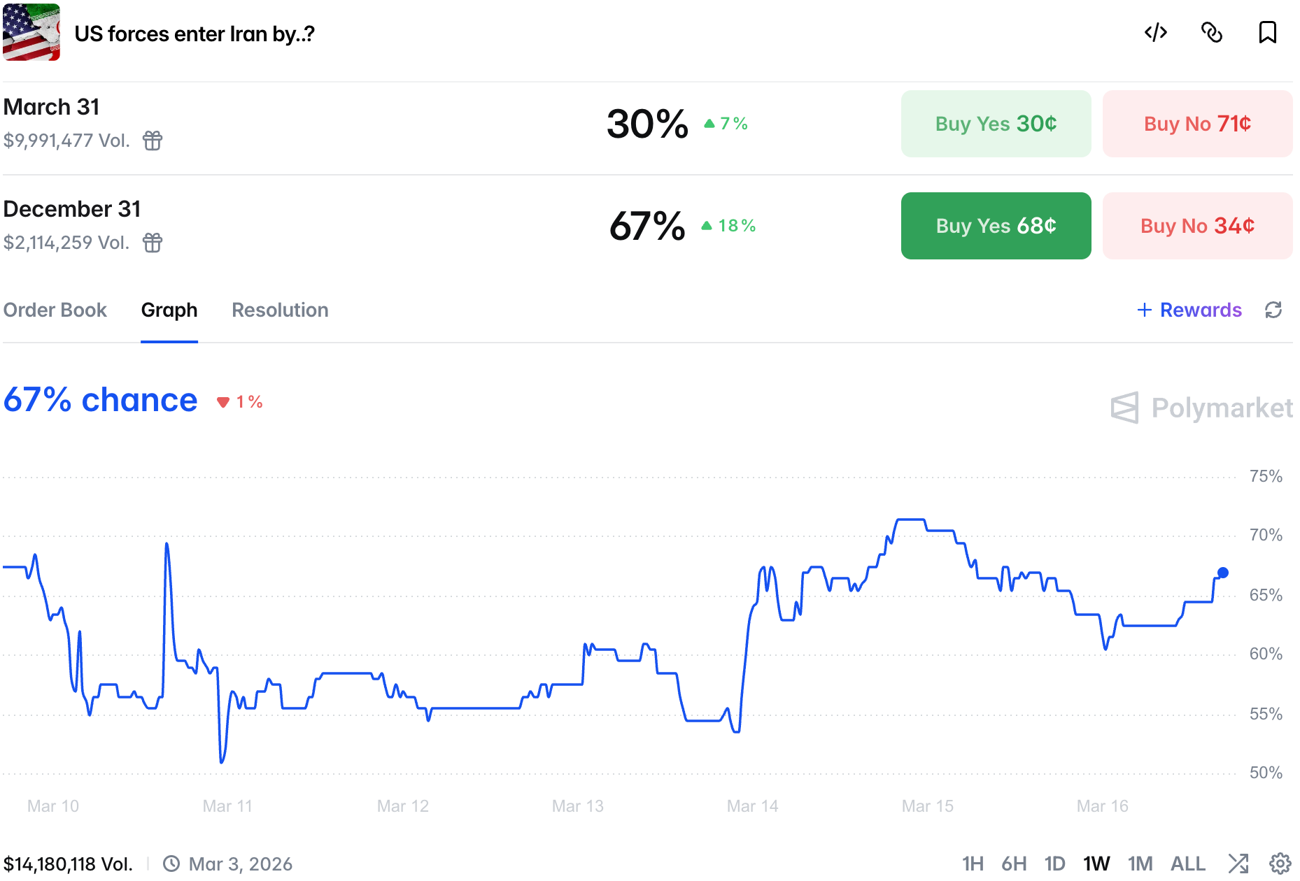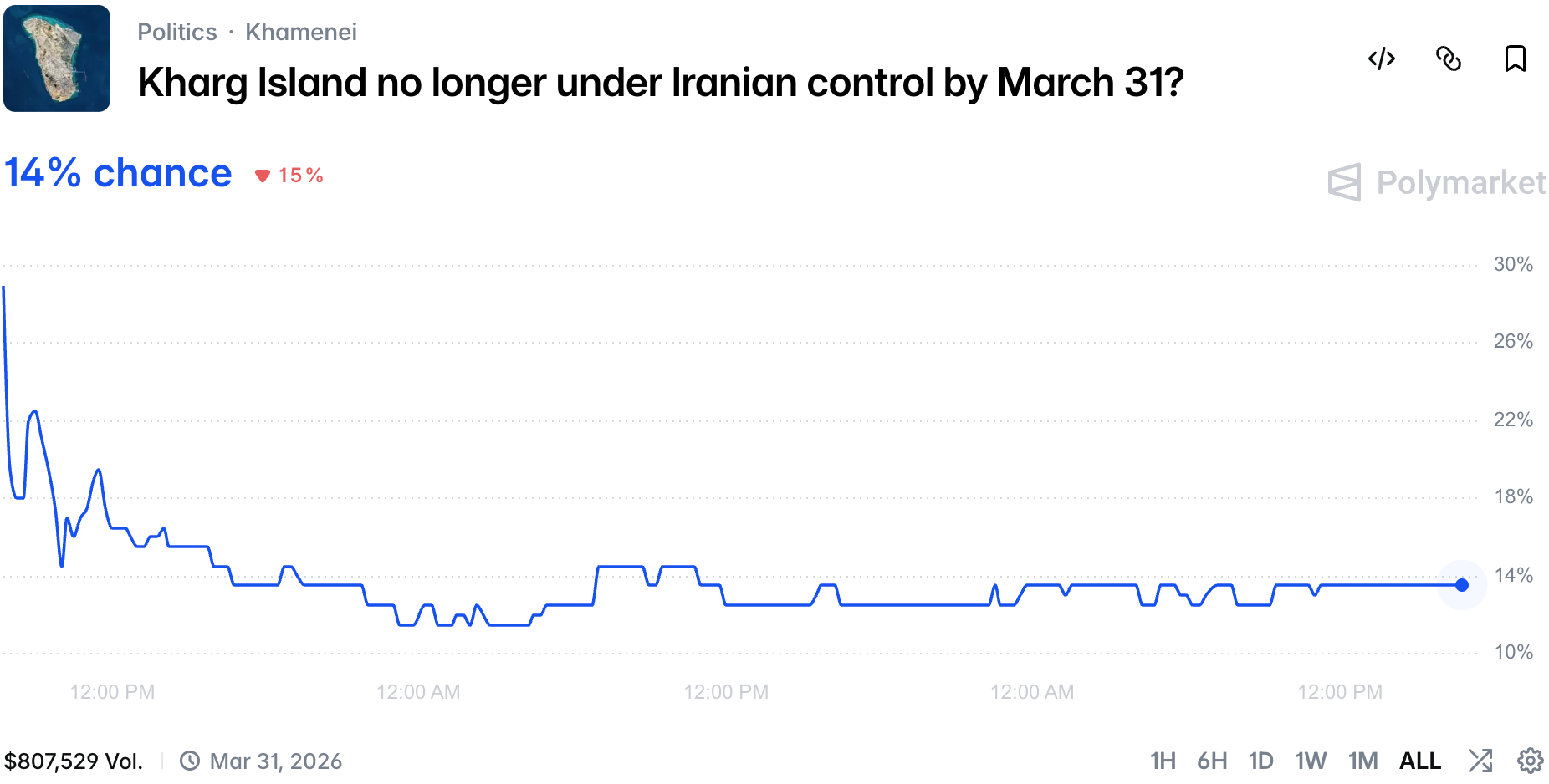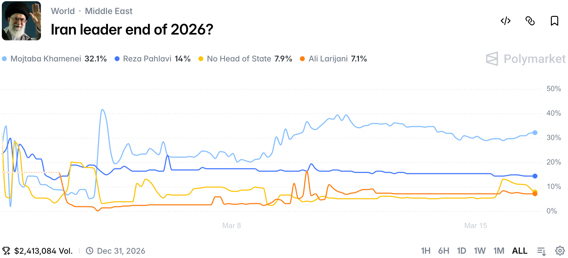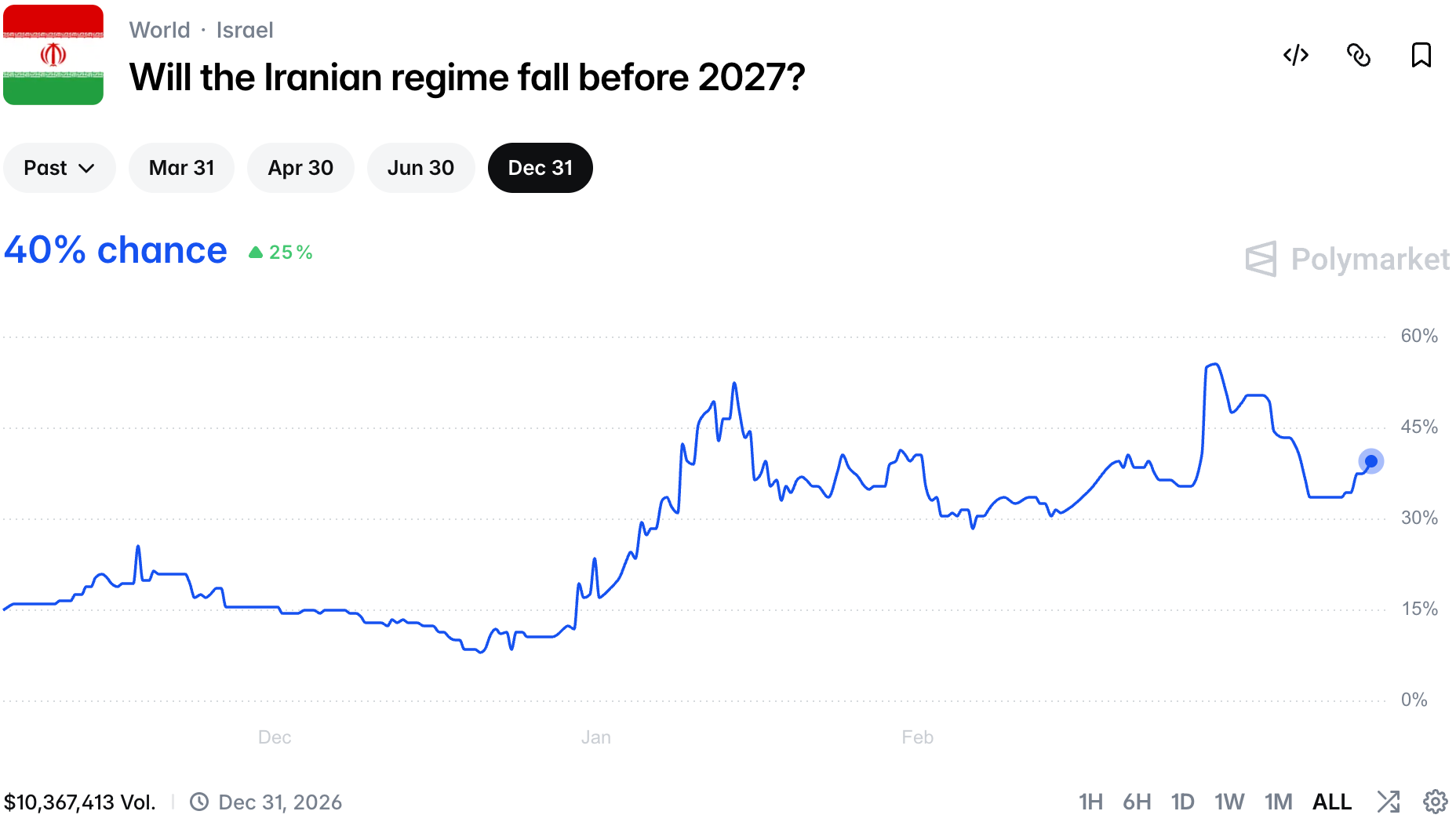 Amid all the chaos, the Iran regime fall market gained slightly as traders try to balance the risk of a prolonged conflict with regime's resilience.
