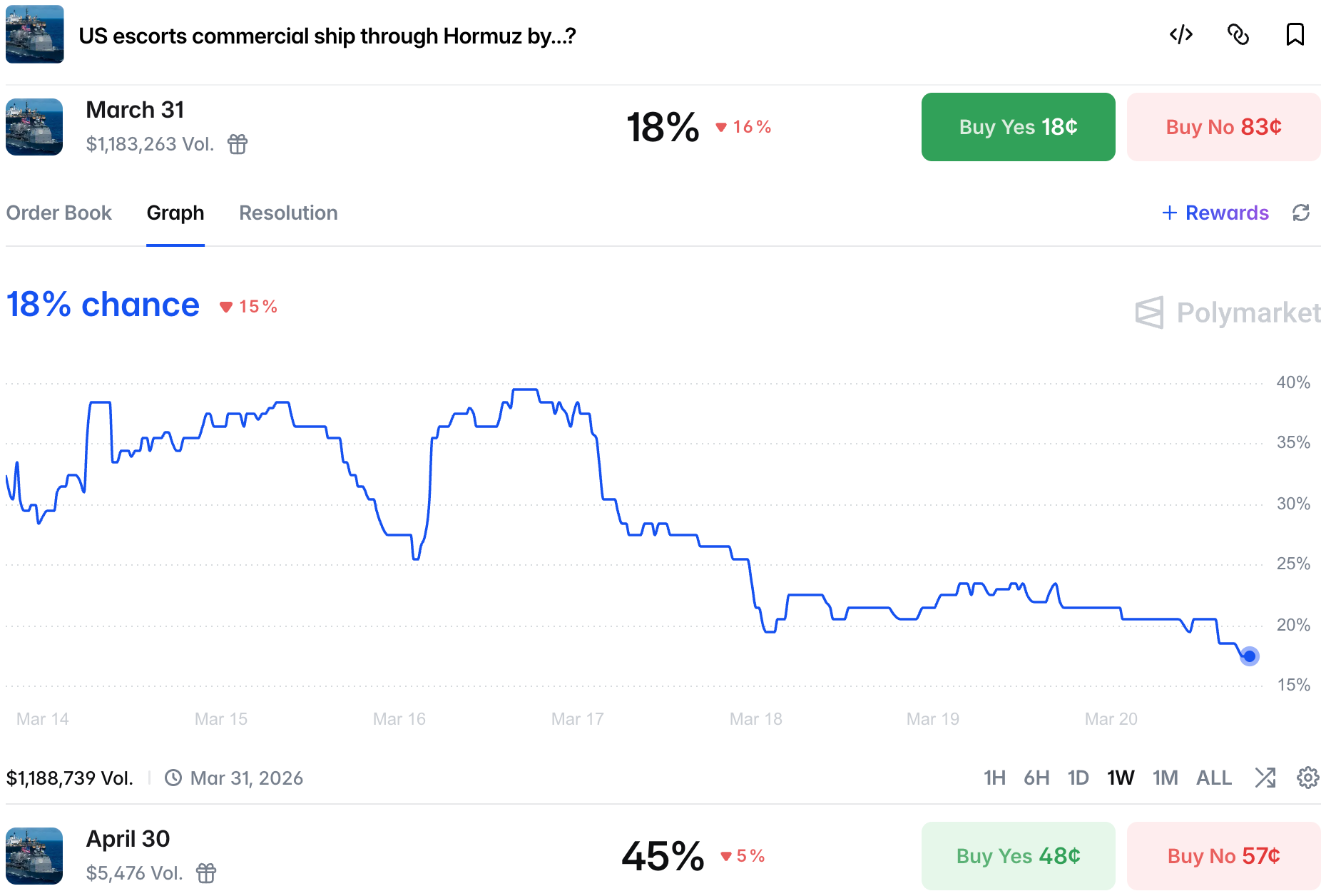 Not only a sign of conflict escalating, but also a real possibility of US boots on the ground. Neither has been overlooked by prediction markets traders as market reality starts to match on the ground reality.