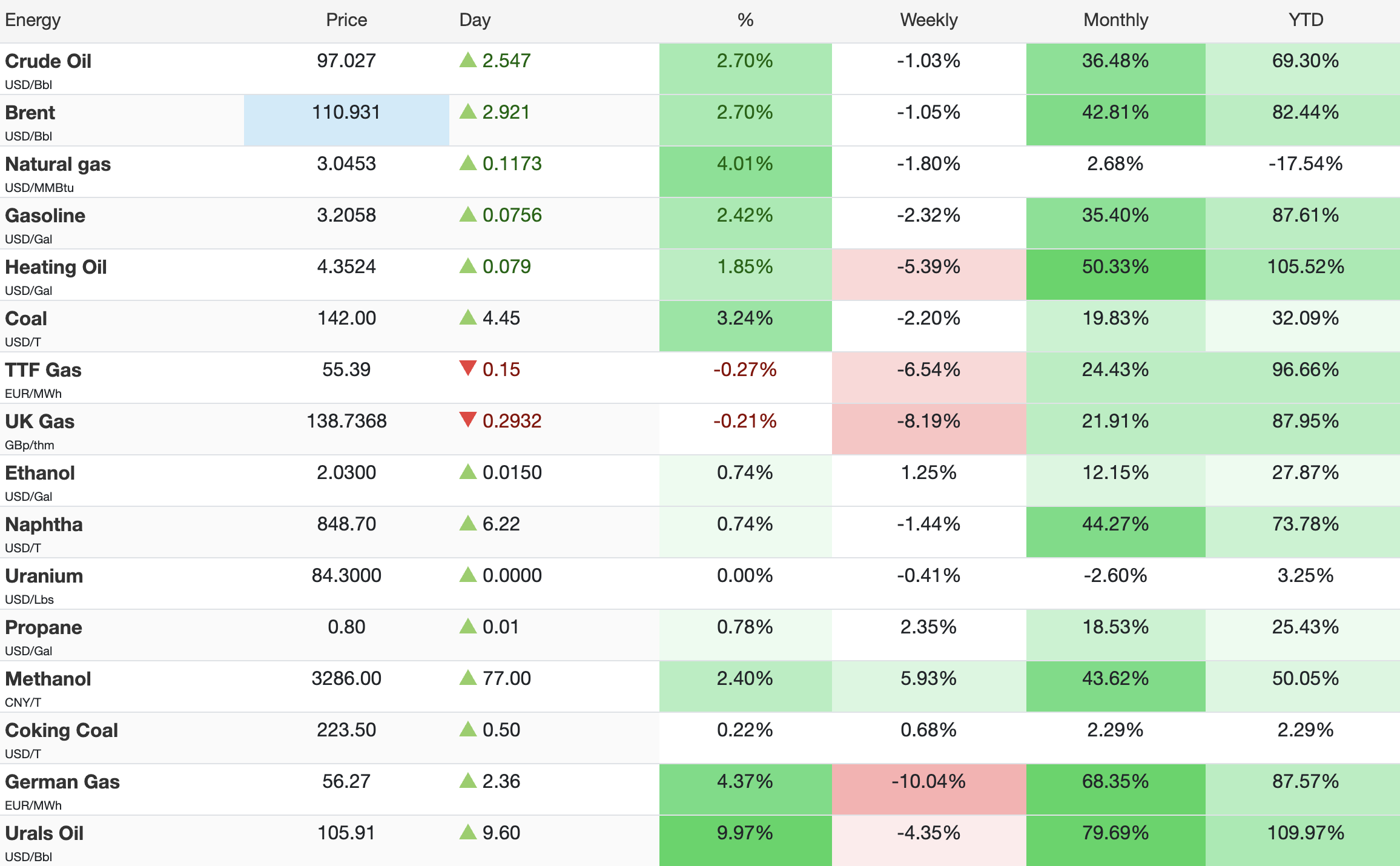 The combination of the above sent energy commodities higher, erasing almost all the drop that happened on Monday: